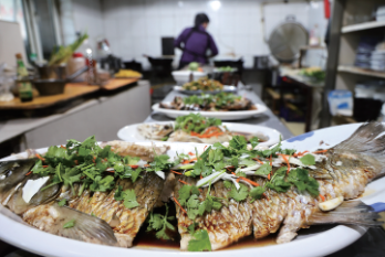 2025年11月22日,查干湖畔一家农家乐的厨师烹制查干湖鱼。当地通过政策引导与资源整合,打造“住民宿、品鱼宴、穿花袄”文旅新场景,推出“乡厨乡味”美食大赛、查小鱼音乐节、体育健身运动展演等活动,延展冰雪旅游产业链,助力乡村振兴。2025年5月1日,查干湖接待游客近7万人次,实现旅游综合收入6076.58万元,同比增长30%。