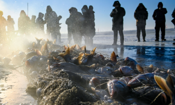 共同见证“冰湖腾鱼”盛景