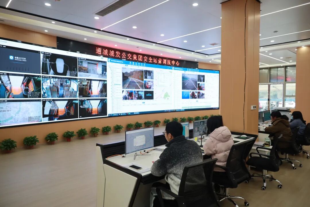 在通城城发公交集团智能调度中心,一块巨大的弧形屏幕占据整面墙,成为整个公交网络的“智慧大脑”。
