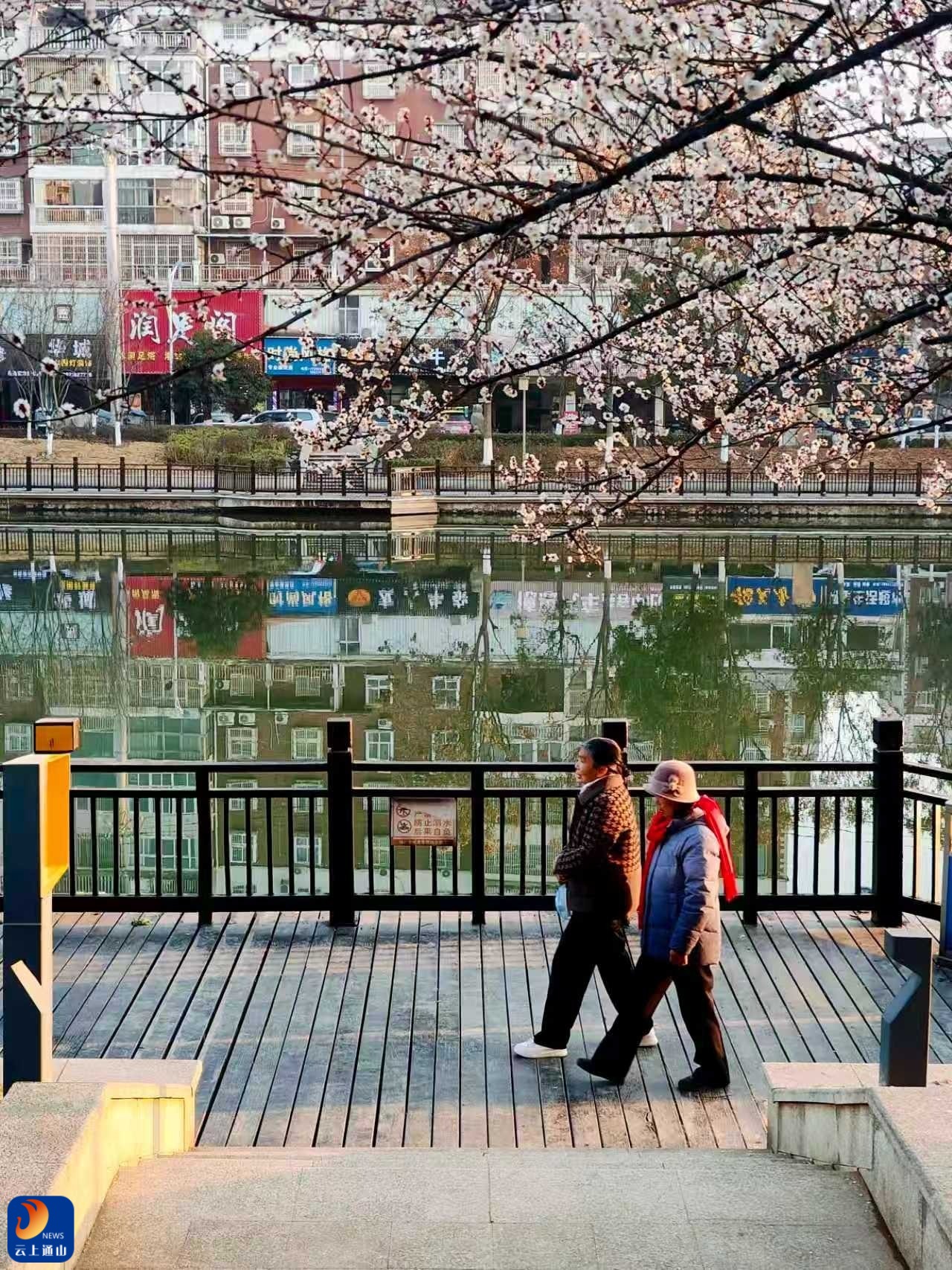 ▲晨雾未散时,河面水汽氤氲,孩童的身影与盛放的早樱相映成趣。