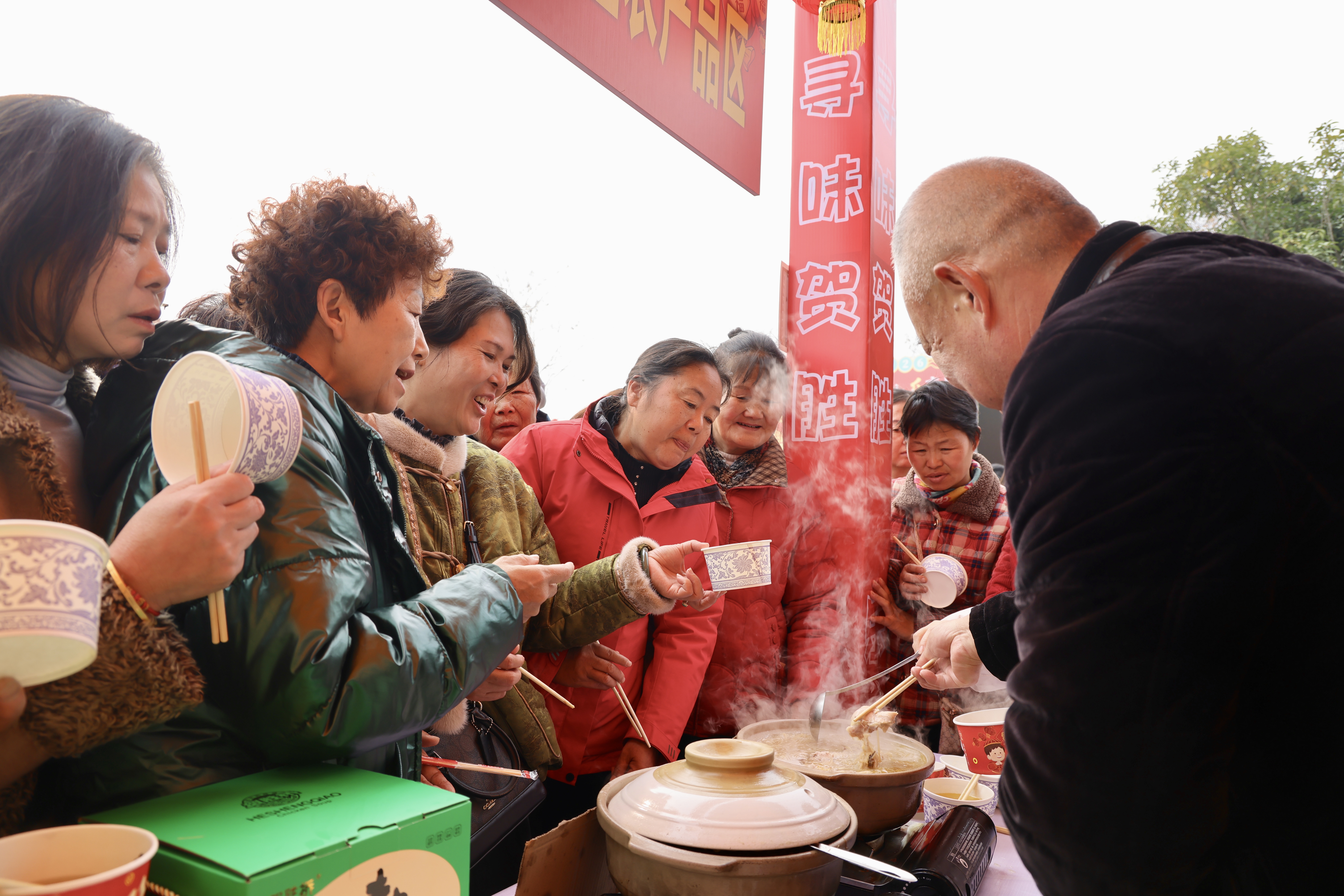 湖北咸宁:5000余名游客奔赴贺胜 体验“鸡汤+音乐”的年味之约