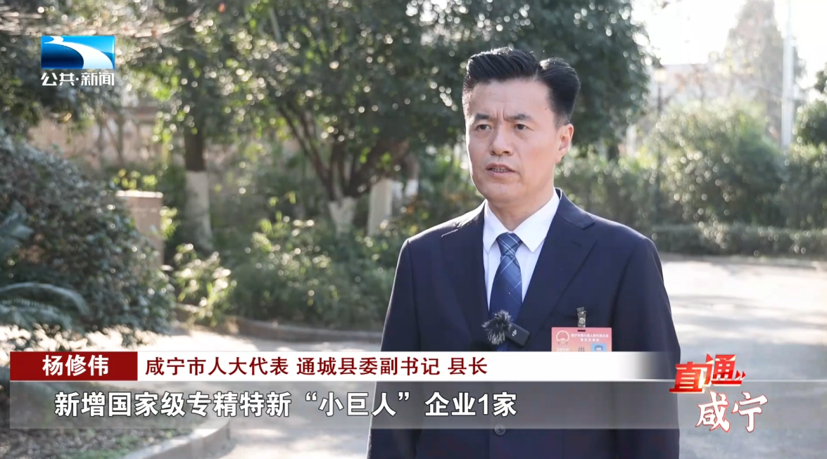 咸宁市人大代表、通城县委副书记、县长 杨修伟:持续做大云母电子材料,和生物医药“一主一辅”产业,新增国家级专精特新“小巨人”企业1家,省级“专精特新”企业15家以上,使我们的规上工业增加值增长7.5%以上,规上工业规模总产值达145亿以上。