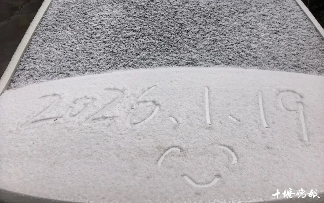 1月19日,十堰多地降雪,这会儿雪越下越大,尤其是十堰城区,房顶、远山已经下白了。