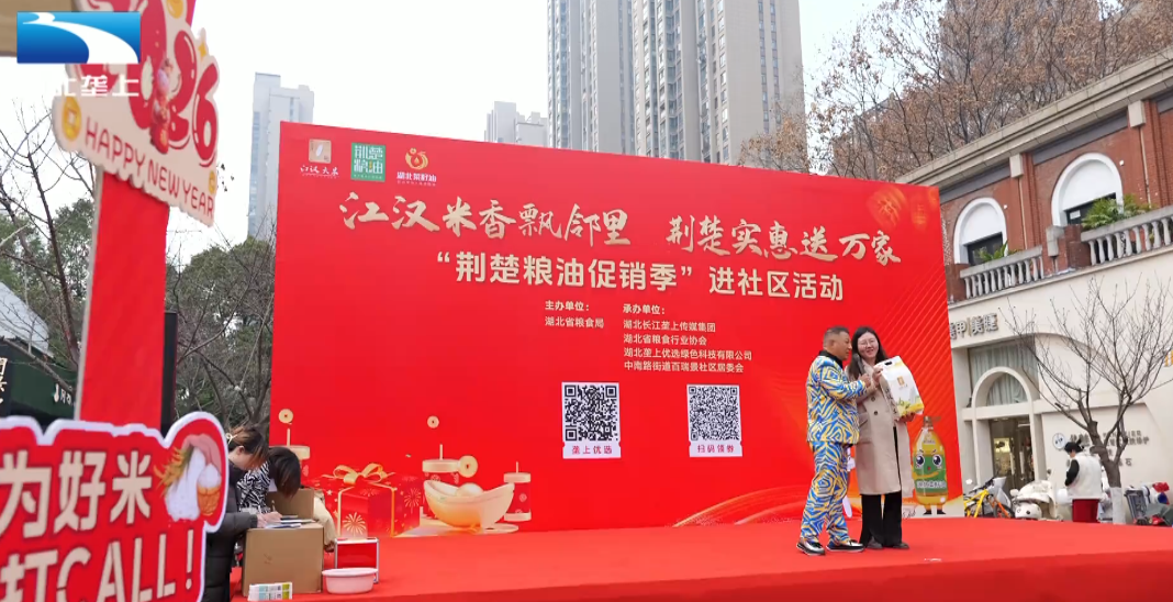 好消息,买米享优惠。为期半年的“荆楚粮油促销季”活动,最近走进了武汉市百瑞景社区,市民购买江汉大米可以使用荆楚粮油推广券,活动现场还有热闹的表演和互动环节。