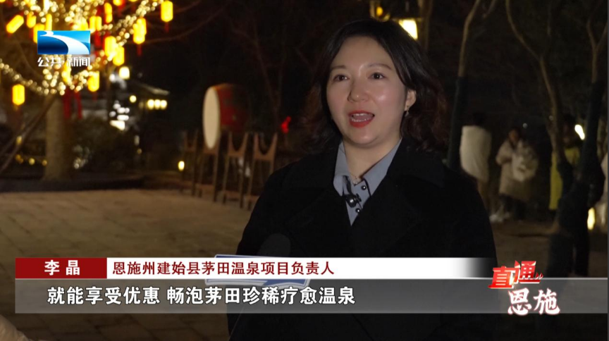 恩施州建始县茅田温泉项目负责人 李晶:凡在指定刨汤宴商户消费,凭消费小票购买温泉门票就能享受优惠,畅泡茅田珍稀疗愈温泉,沉浸式体验地道土家民俗年。