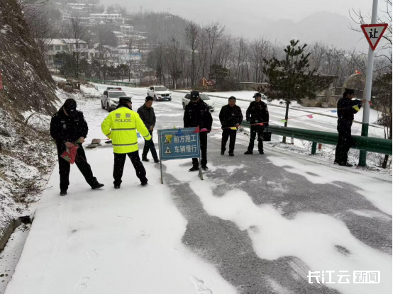 “S242国道是连接鄂陕两省交通运输的重要路网之一,为保障人民群众出行安全,第一时间启动应急预案。”郧西县公安局交管大队大队长余吉军介绍,全县共有140名交通警察上路执勤,增加临时执勤点17个,保障1条国道、6条省道畅通。同时,针对山区道路弯急坡陡的特点,采取“警车压速带道+人工撒盐除冰”方式,引导车辆缓慢通行。对积雪过深、不具备通行条件的路段,及时设置警示标志,实施临时交通管制,守护群众出行安全。