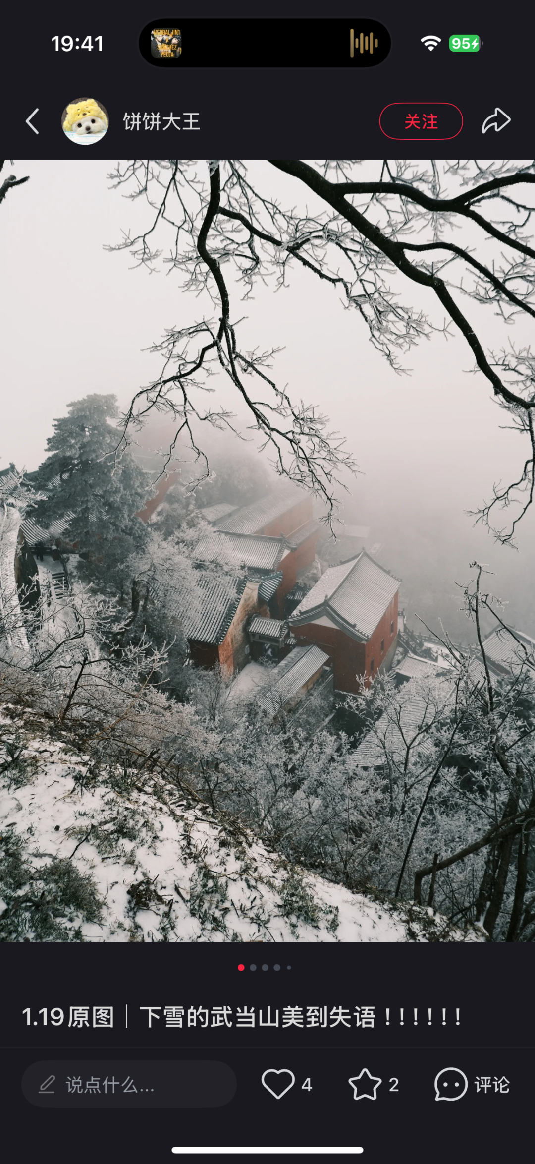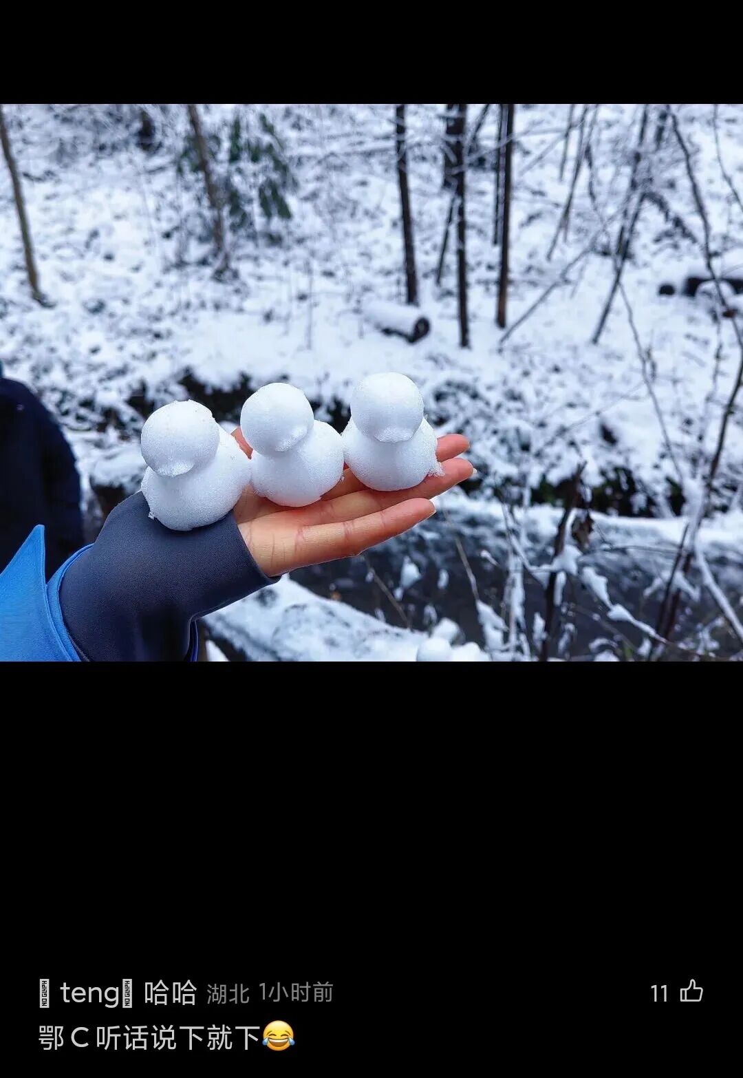 在社交平台分享雪景
