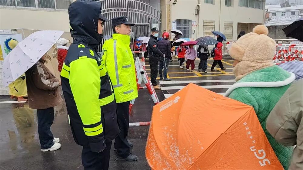 交通管理大队全员投入路面管控,按照“重点路段全覆盖、关键节点无遗漏”原则,将警力最大限度投向高速公路、国省道主干线、城区核心道路及桥梁隧道、事故易发路段,通过巡逻喊话、定点警示、流动疏导等方式,持续引导过往驾驶人减速慢行、保持安全车距。同时,主动对接公路养护部门,提前备足融雪剂、除雪设备等应急物资,建立“雪情即指令”的清雪除冰联动机制,确保实现“雪停路净、冰消路通”的保障目标。结合1月19日周一早高峰及校园护学实际需求,交管大队联合城关派出所提前增派警力,在中小学校周边及城区主要交通路口加密护学岗、强化高峰岗,全力保障早高峰交通秩序平稳有序。