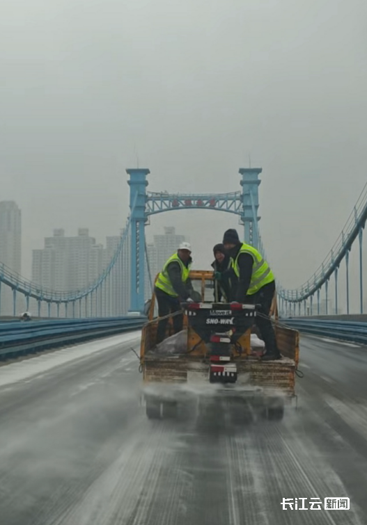 针对城区跨江桥梁众多的特点,市桥梁管理中心提前组建6支专业应急分队,储备足量融雪剂并检修设备,通过24小时视频监控实时掌握桥况。