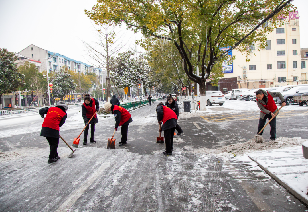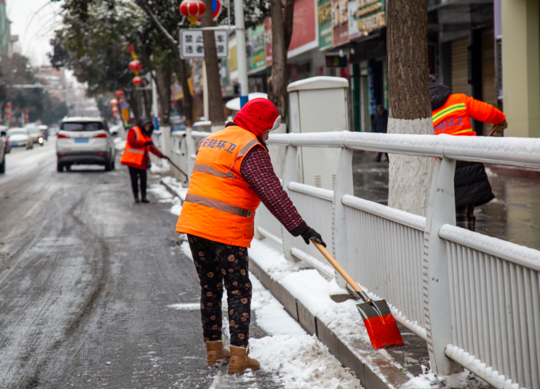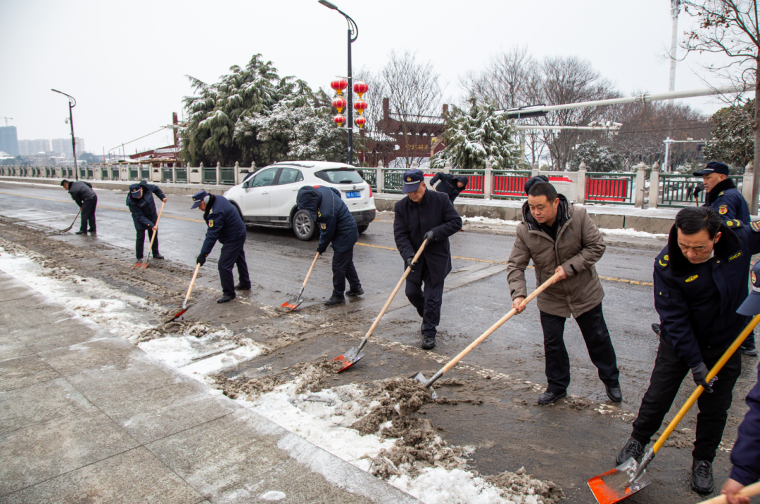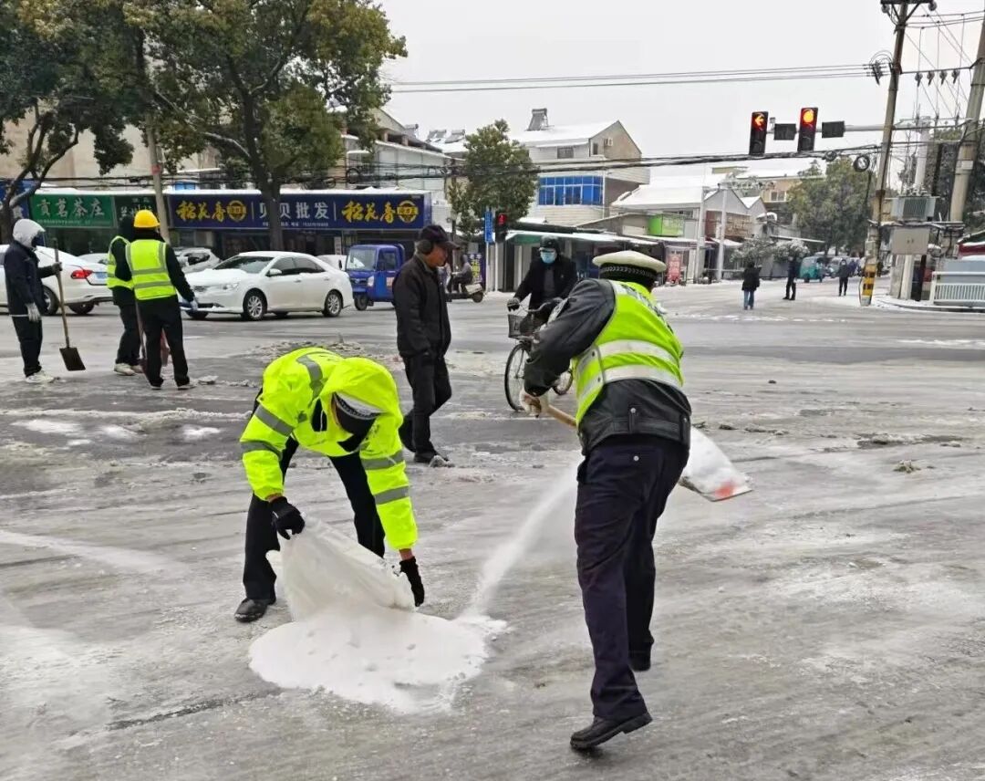 天还未亮,公安、城管、环卫工人们就已迎着风雪上岗