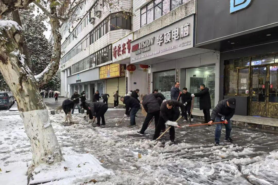 ▲宜都市市场监管局组织干部职工分赴办公区域、包联小区及包联路段开展积雪清扫工作。