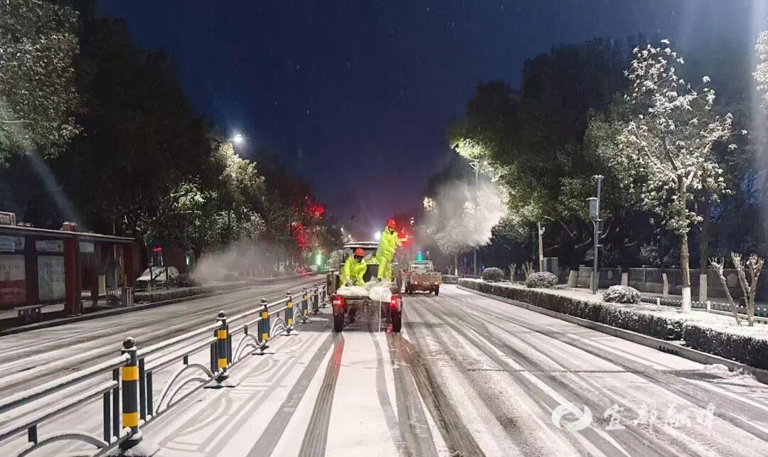1月19日,宜都市气象台发布道路结冰黄色预警信号。受降雪和持续低温影响,全市多地出现不同程度积雪和道路结冰,部分路段车辆通行受阻。交通、城管部门累计出动巡查应急人员900余人次,大型铲雪车、撒布机等各类专业除雪设备协同作业,精准抛撒融雪剂,快速消融路面冰层。