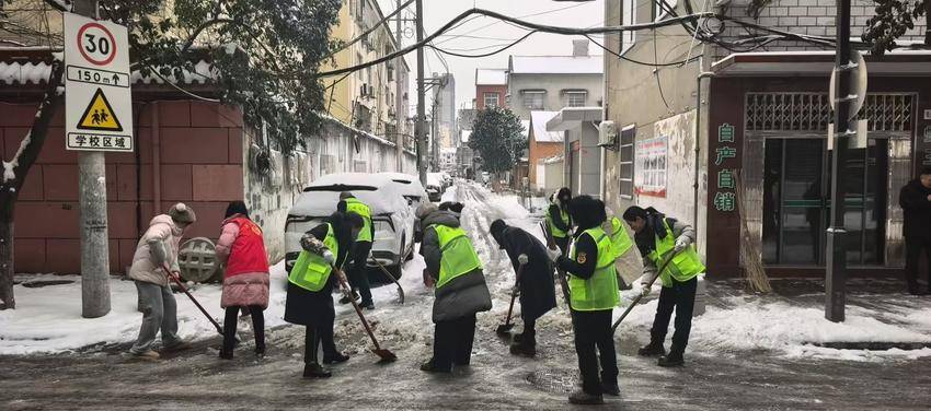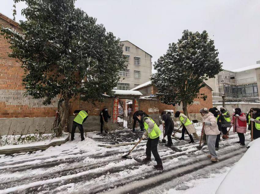 湖北宜城九龙社区民兵冒雪铲冰除雪保民生