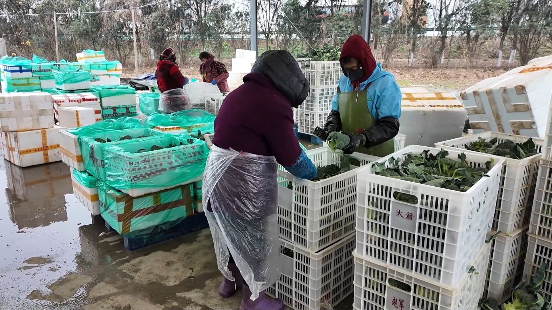 在做好大棚保温的同时,露地蔬菜的抢收工作也在同步推进。在枝江多家合作社的冷库外,村民们驾驶满载西兰花等时令蔬菜的三轮车有序驶入,工作人员迅速分拣、整理后入库,冷库低温环境将牢牢锁住蔬菜新鲜度。