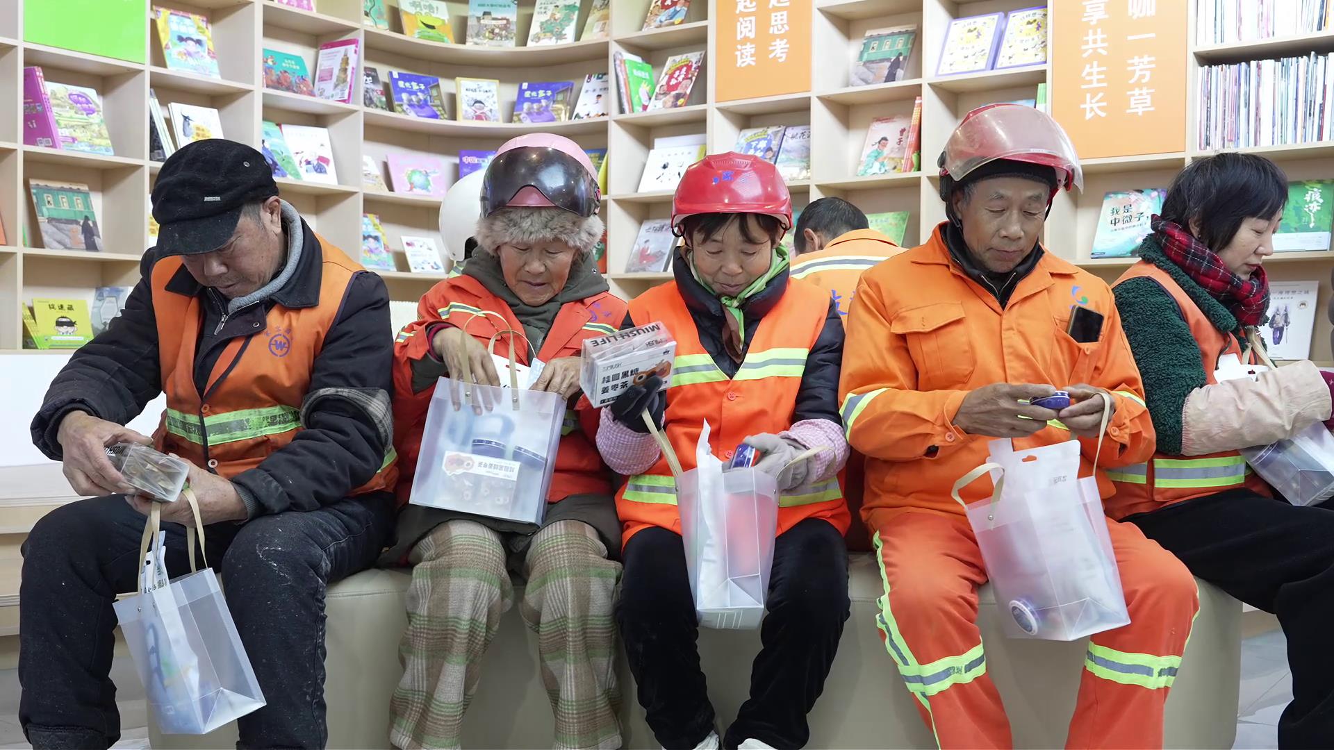 环卫保洁员鲜于玉梅说:“领到暖冬礼包真的很高兴,防冻霜和暖宝宝特别实用。我们冬天在外面干活手脚容易冻,抹点防冻霜,贴个暖宝宝人就感觉舒服多了。”
