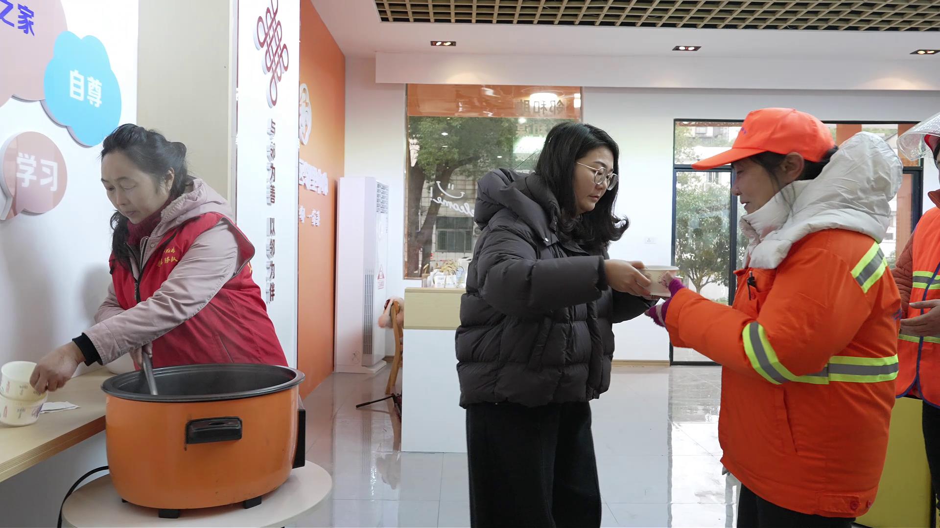 枝江市总工会职工服务中心工作人员邵琪说:“天气比较寒冷,我们已通知全市驿站全天开放,提供热水并有空调取暖。驿站内安排有帽子、手套、围巾等暖冬三件套,户外劳动者可以根据需要随时取用。同时我们也倡导更多的街边商户,主动为户外劳动者提供暖心避寒服务。”