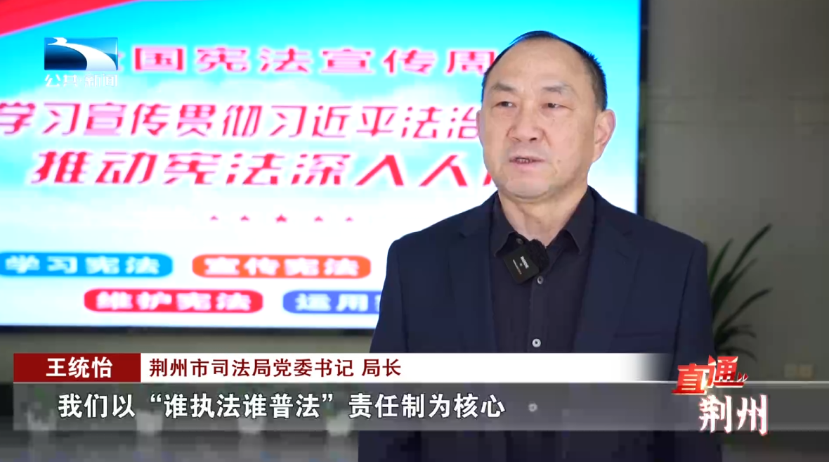荆州市司法局党委书记、局长 王统怡:我们以“谁执法谁普法”责任制为核心,构建部门联动机制,继续巩固壮大“法律明白人”这支生力军,努力推动法治副校长制度持续深化,为青少年撑起坚实的法治保护伞,以法治赋能基层,让一个个民主法治示范村居连片成林,助推法治荆州建设高质量发展。