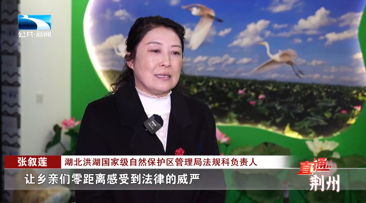 湖北洪湖国家级自然保护区管理局法规科负责人 张叙莲:巡护到哪里,生态保护的政策和法律法规就宣传到哪里,我们联合法院、检察院,把生态案件庭审直接开到沿湖村庄,让乡亲们零距离感受到法律的威严和生态的珍贵。