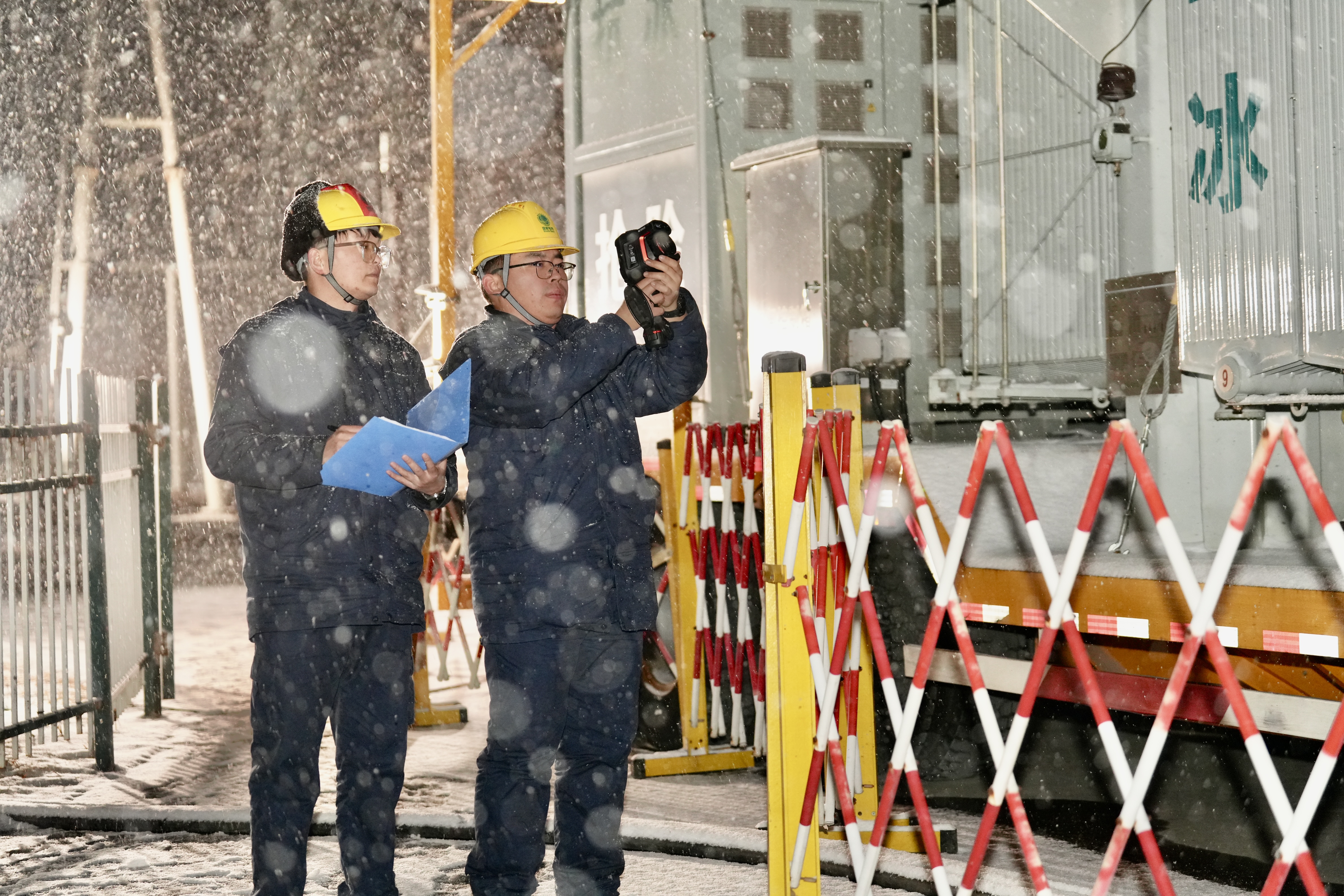 截至1月20日15点,全省恢复有人值守变电站315座,累计开展变电站特殊巡视1846站次。1月19日深夜,在特高压武汉换流变电站,国网湖北直流公司的运维人员正冒着纷飞的大雪开展夜间特巡。运维人员手持红外测温仪,在寒风中逐台设备、逐个部件测温,手脸被冻得通红,呼出的白气在设备外壳上瞬间凝霜。