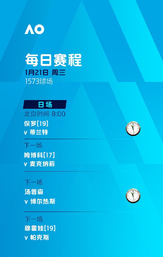 今天,2026年澳大利亚网球公开赛将迎来第四个比赛日。