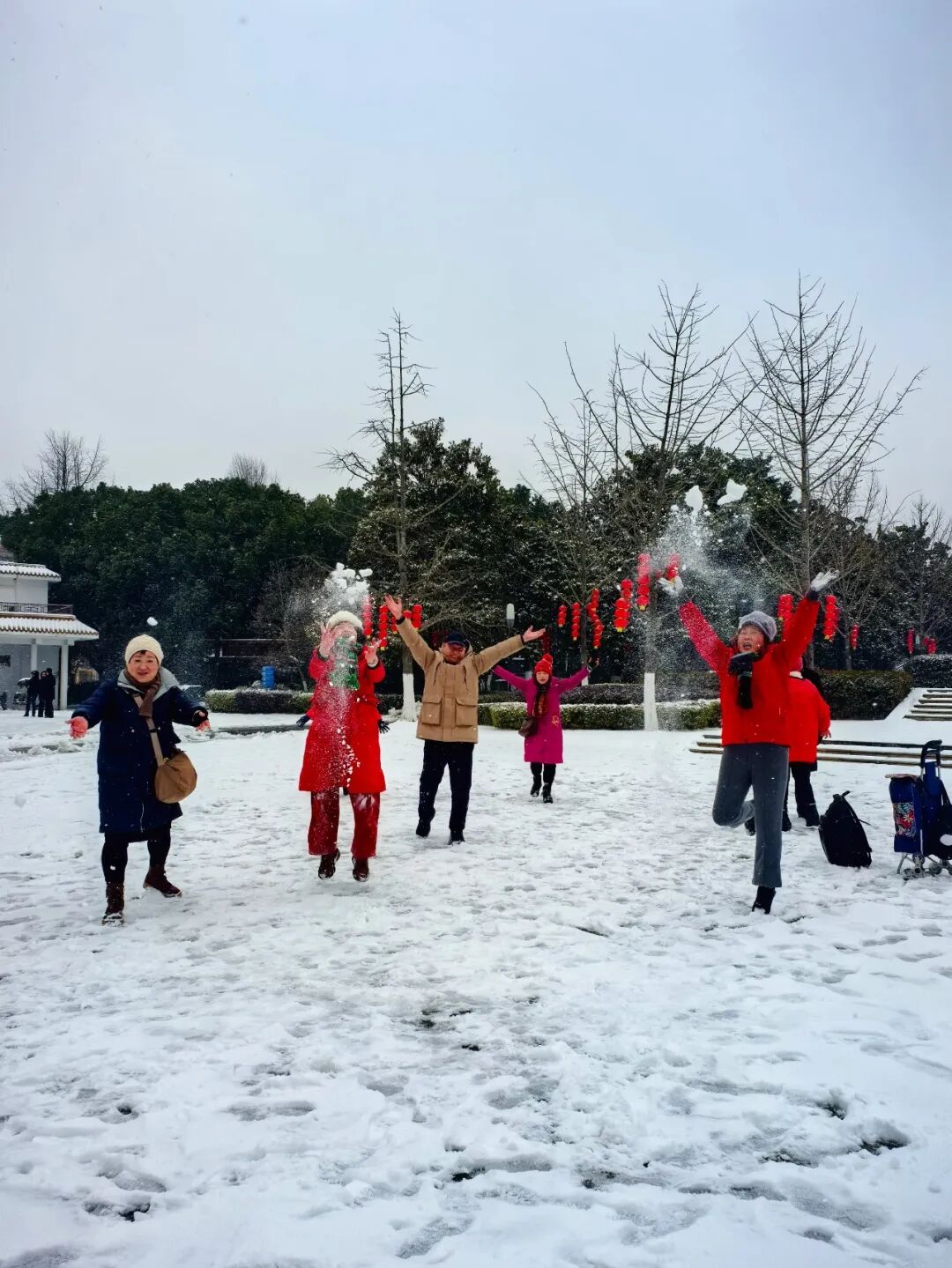 几位老姨妈尽情玩雪