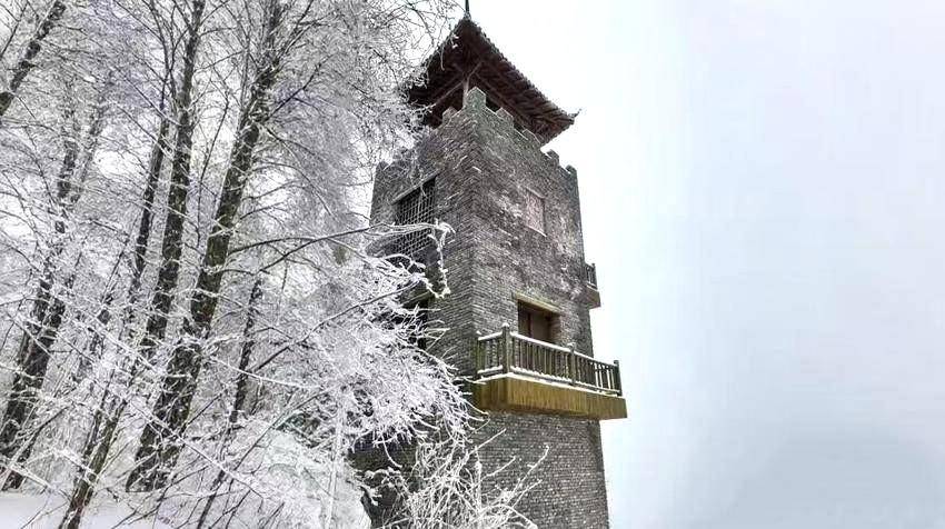 沿S275省道盘山而上,便闯入一幅流动的冰雪画卷,随手一拍都是绝美的风光照。道路两侧林木褪去枝叶繁杂,被雾凇裹成玉树琼枝,或如银条垂落,或似珊瑚丛生,层层冰晶在风中轻晃,每一缕枝丫都透着清冽之美,似要落下满枝清欢。每一个弯道都藏着惊喜,山涧溪流凝冰成瀑,晶莹剔透间余韵犹存,航拍视角下,依山而建的村落错落有致,黛瓦覆雪,炊烟袅袅升起,与山间云雾交织,晕染出世外桃源般的静谧,引人驻足定格这份冰雪与烟火的交融之美。