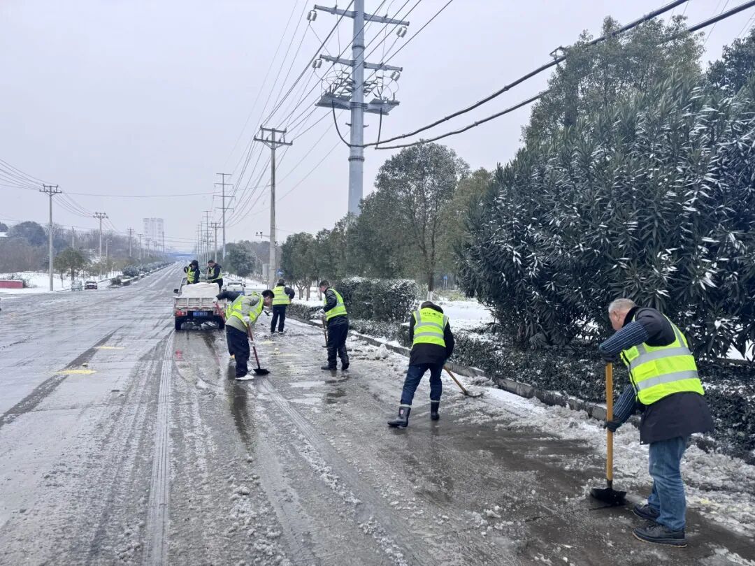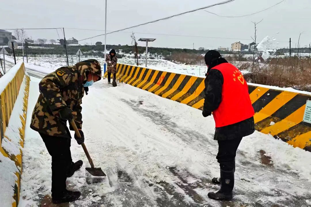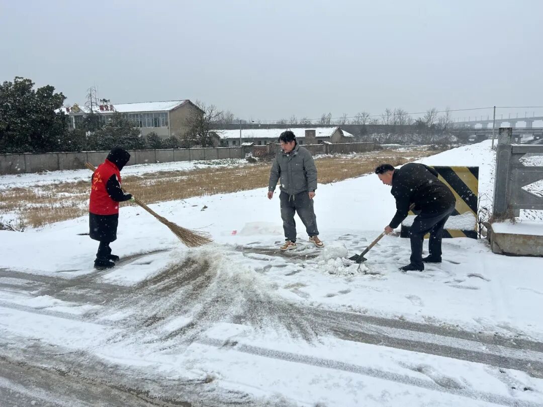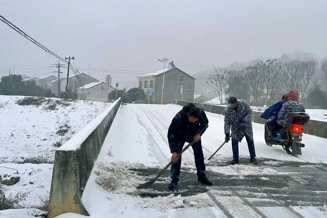 1月20日凌晨,董市镇迅速组织镇村党员干部积极开展除雪除冰工作,采取“人工+机械”的方式,全力以赴保障广大群众正常生产生活秩序和生命财产安全。与此同时,各村(社区)开展特殊人群敲门行动和农业安全检查,通过微信群、村村响等方式及时发布天气预警信息,加强宣传引导,提醒群众做好个人安全防护措施。