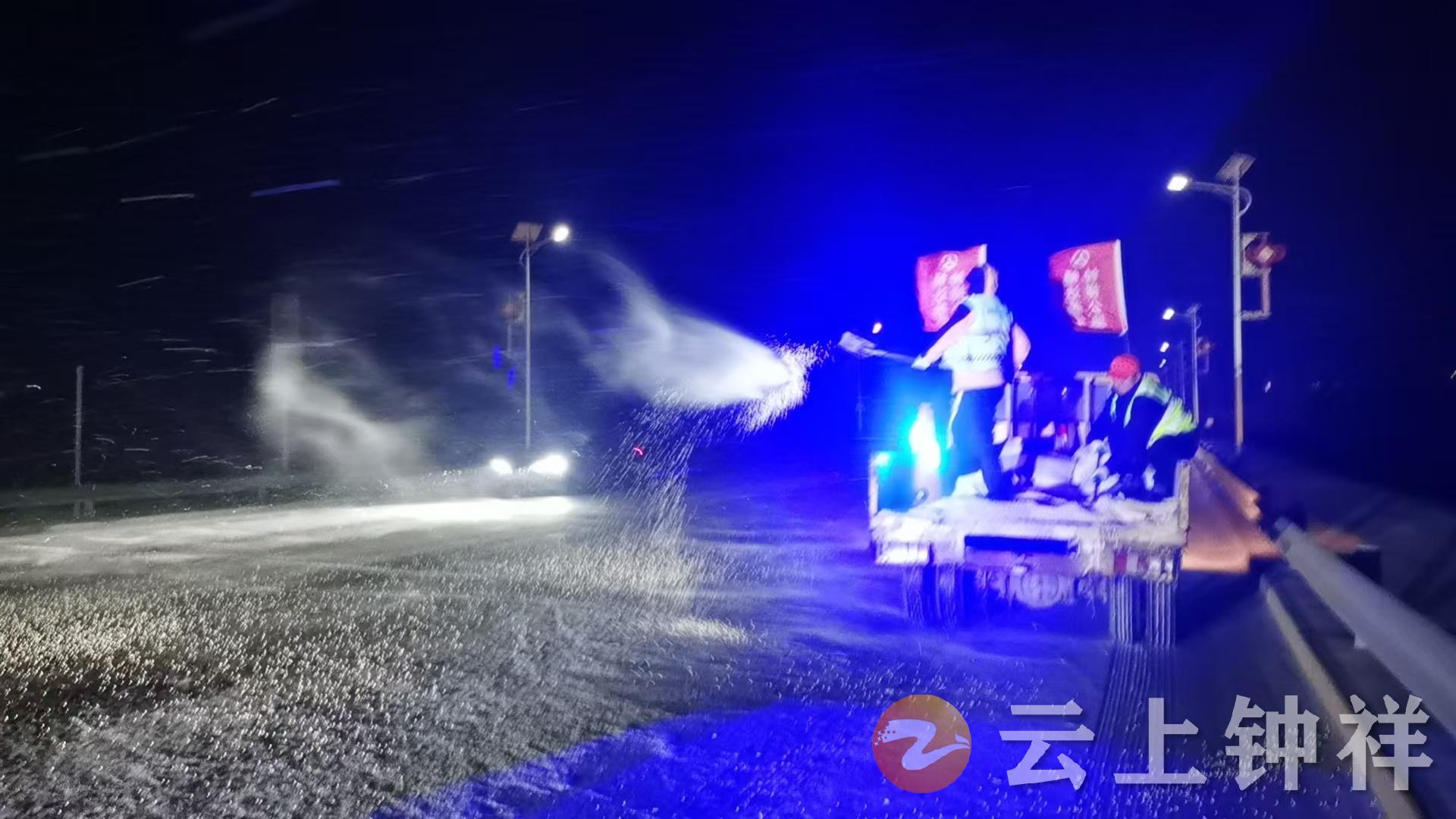 钟祥市交通运输局320人应急抢险队、20人党员先锋队全员集结,10台套撒布机、装载机、养护车等迅速奔赴汉江二桥、207国道襄荆高速立交桥等重点路段。“汉江二桥桥面宽、易结冰,绝不能让交通命脉中断!”党员向东带领15人攻坚组,24小时驻守3470米长的桥面,顶着刺骨寒风加密巡查,实时监测路面结冰情况,确保“雪停路净、冰消通行” 。在207国道丁坪路口长陡坡段,党员杨国兴完成45公里线路巡查后,抿一口水便再次投入融雪剂撒布工作,“这里车流量大,结冰就可能引发拥堵,多抢一分钟就少一分风险!”沙哑的声音在风雪中格外坚定。