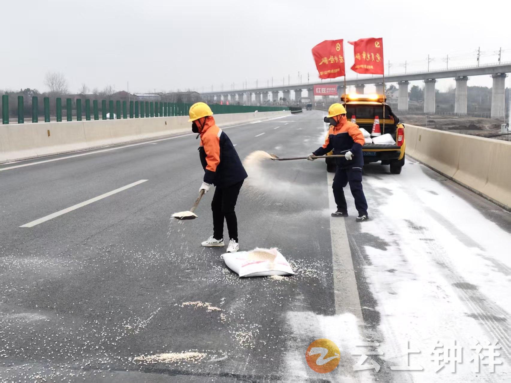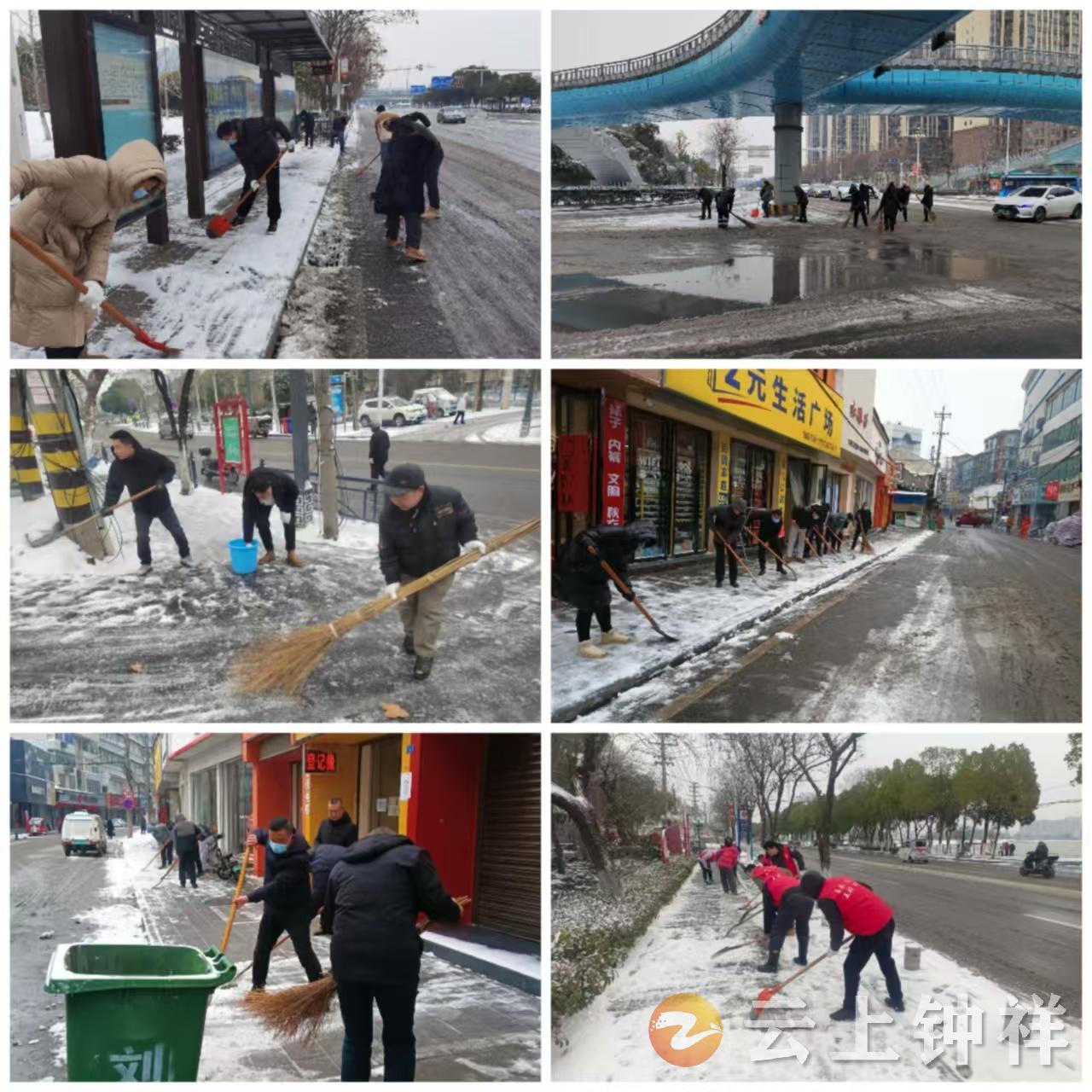 “党员干部带头干,群众跟着一起上!”在党员干部的示范引领下,钟祥市民纷纷自发参与抗冰除雪。社区网格员、志愿者、商户业主齐上阵,形成“干部带头、群众参与、全民抗灾”的生动局面。截至20日中午,全市累计出动人员8000余人次,投入执法人员、养护人员400余人次,巡查车辆126台次,机械设备54台次,抛撒融雪剂282.9吨,防滑料160立方米,麻袋69条,全力保障全市国省干线公路、城乡道路畅通无阻。