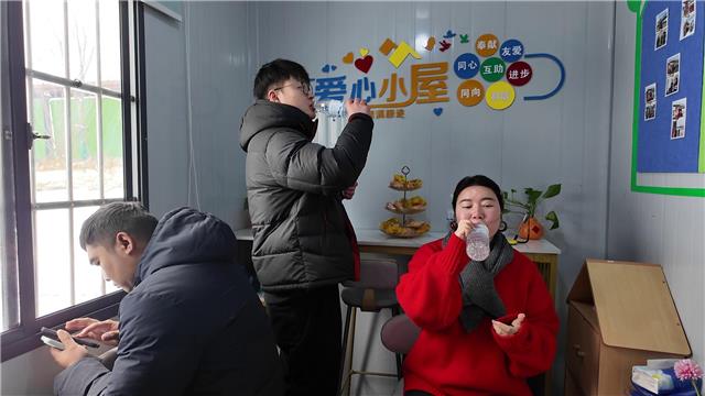为改善司机休息条件,收费站专门开放24小时“爱心小屋”,方便司机休息。屋内空调持续供暖,配备直饮水、手机充电设备和休息座椅,成为司机们的“临时驿站”。小车司机陈杏说:“刚才在外面冻得手脸通红,一进房间就觉得好暖和,还准备了水和面包,正好我没吃早饭,可以垫一垫。”