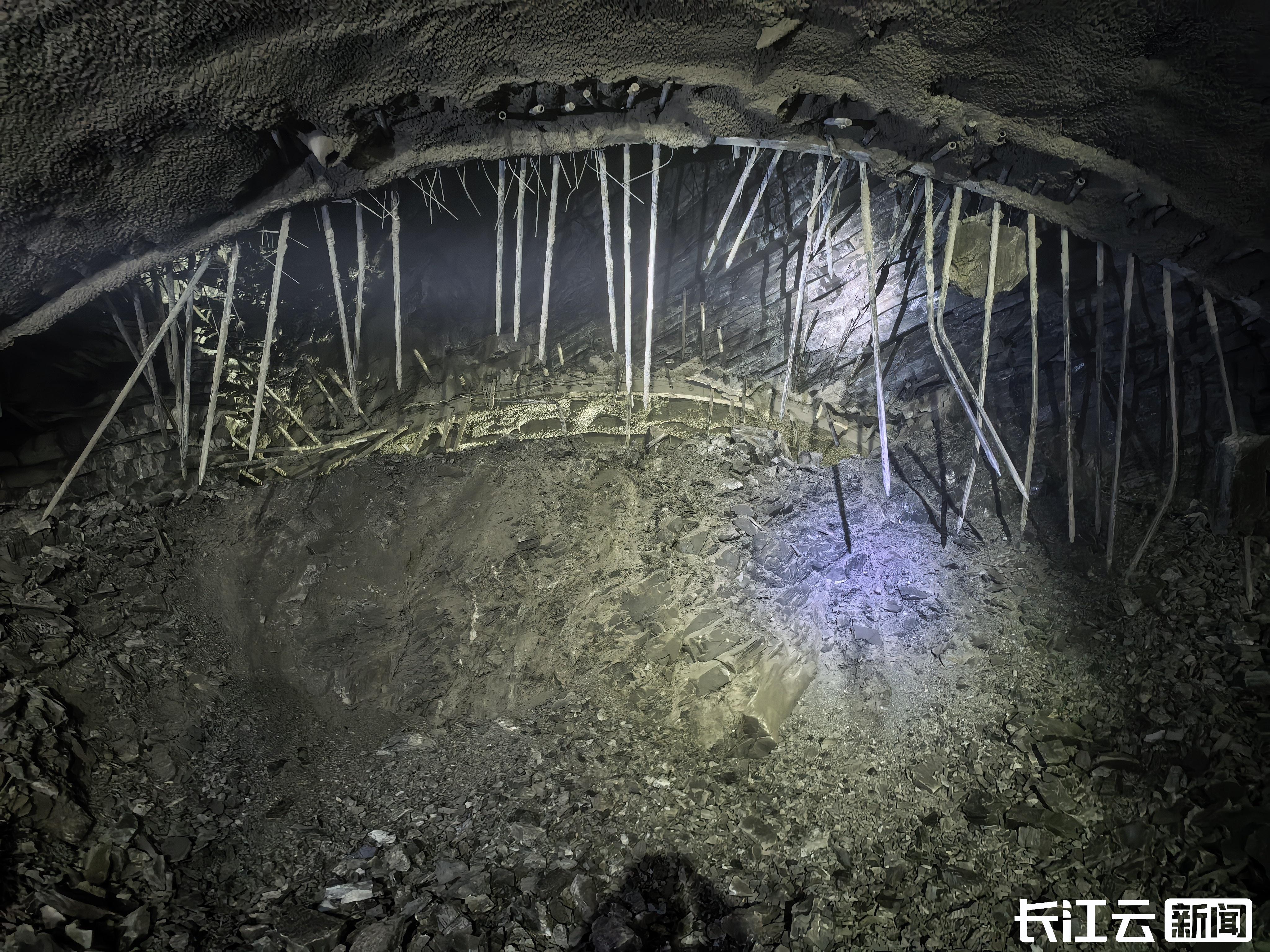 兴山东隧道地处湖北省宜昌市兴山县,隧道全长16.88公里,正洞穿越7条断层破碎带,最大埋深达1256米,地质环境极为复杂。为解决施工难题,参建各方合力共为,邀请院士专家数次到现场把脉会诊,项目团队以“岩变我变、主动应对、动态管理”的原则组织施工,过程中深入研究围岩特性,联合科研院所开展技术攻关,创新研发“锚索+钢带牵引”技术,将破碎围岩“缝合”成为坚韧整体,辅以双层支护的坚实支撑,为隧道穿上了“软猬甲”,成功遏制围岩大变形,保障了工程建设安全。