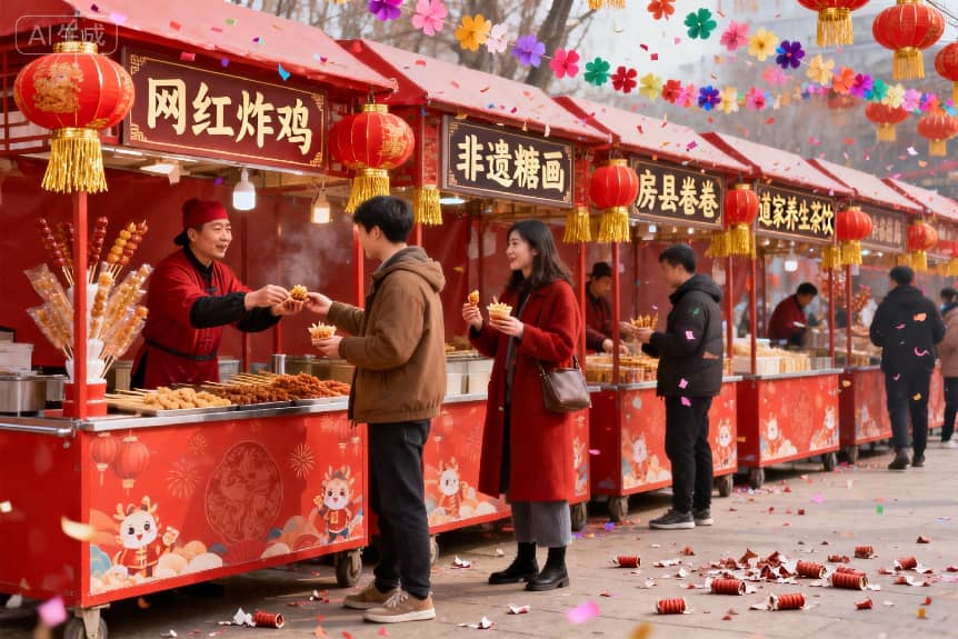 除上述核心项目外,购买联票游客还可在“武当一梦”演艺园区参与高能剧本游《一步江湖》,在35个演艺点位沉浸互动;观赏无人机编队与烟花构成的夜景表演;逛新春非遗年味市集,品尝地道小吃、参与民俗互动;收集武当山标志建筑手绘卡片,参与集运活动。
