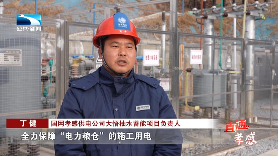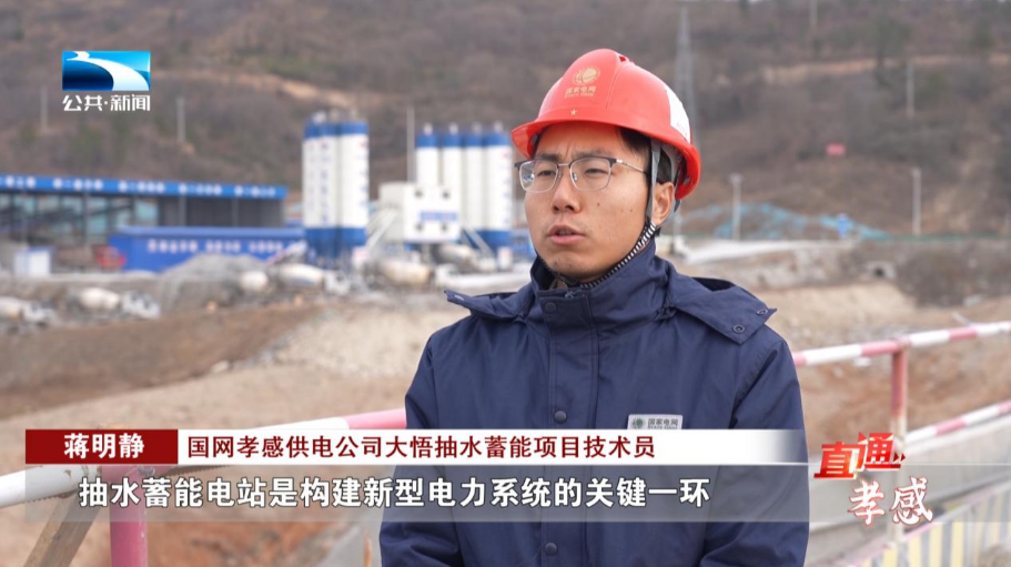 国网孝感供电公司大悟抽水蓄能项目负责人 丁健:全力保障“电力粮仓”的施工用电,电站就像是电网的“巨型充电宝”,能在用电低谷时储能在高峰时发电,极大增强电网调节能力,我们将持续跟踪服务,确保电站建设顺利推进。