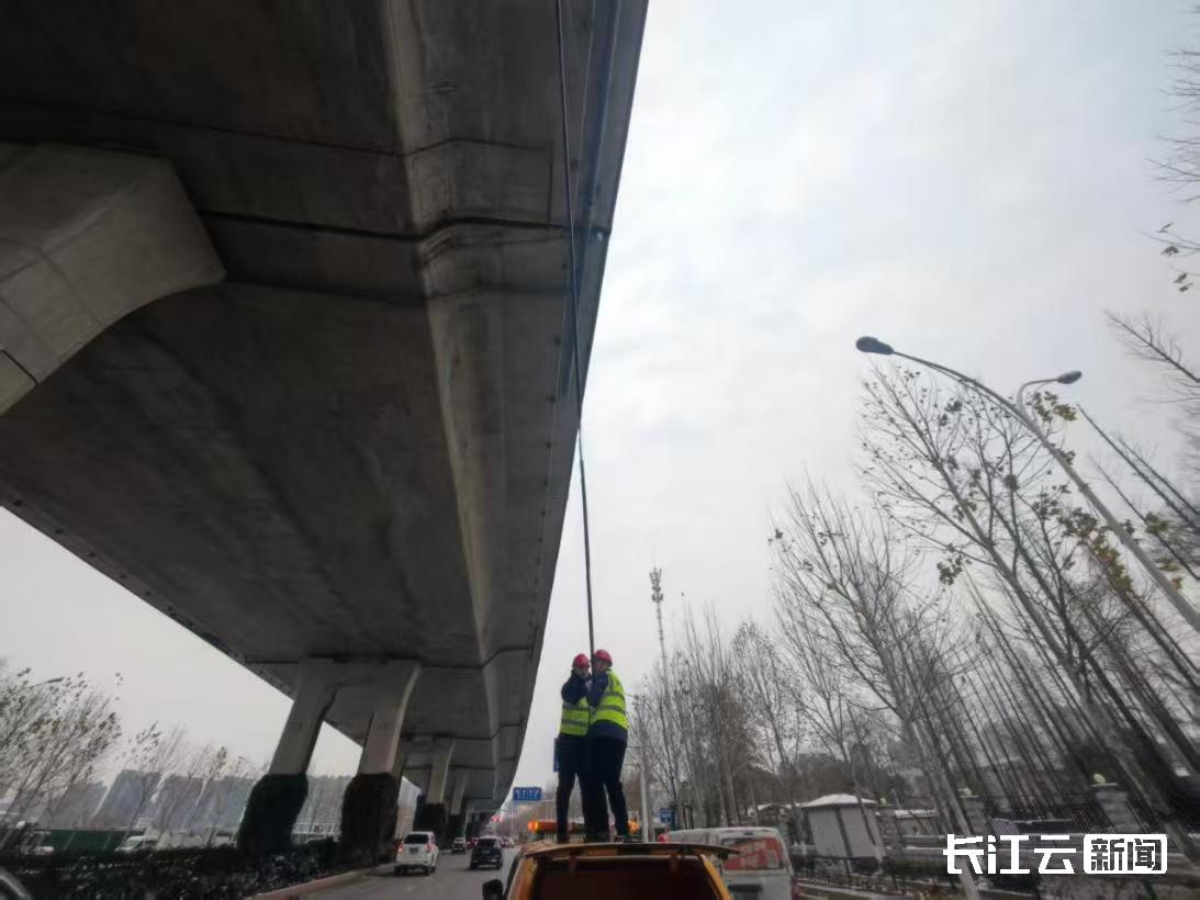 这些看似晶莹的“冰溜子”,实则如同悬挂的“暗器”,给行人和车辆通行带来安全隐患。为保障市民安全,各桥隧管养单位以雪为令,持续监测桥隧结冰状况,一旦发现冰凌,做到“随结随清”,经排查,全市城市桥隧总体安全畅通,市民可放心通行。与2024年相比,今年冰雪天气持续时间较短,二七长江大桥等跨江斜拉索桥梁的钢索积存雨雪量不足,故未形成冰凌,冰凌主要出现在高架桥梁体下部。