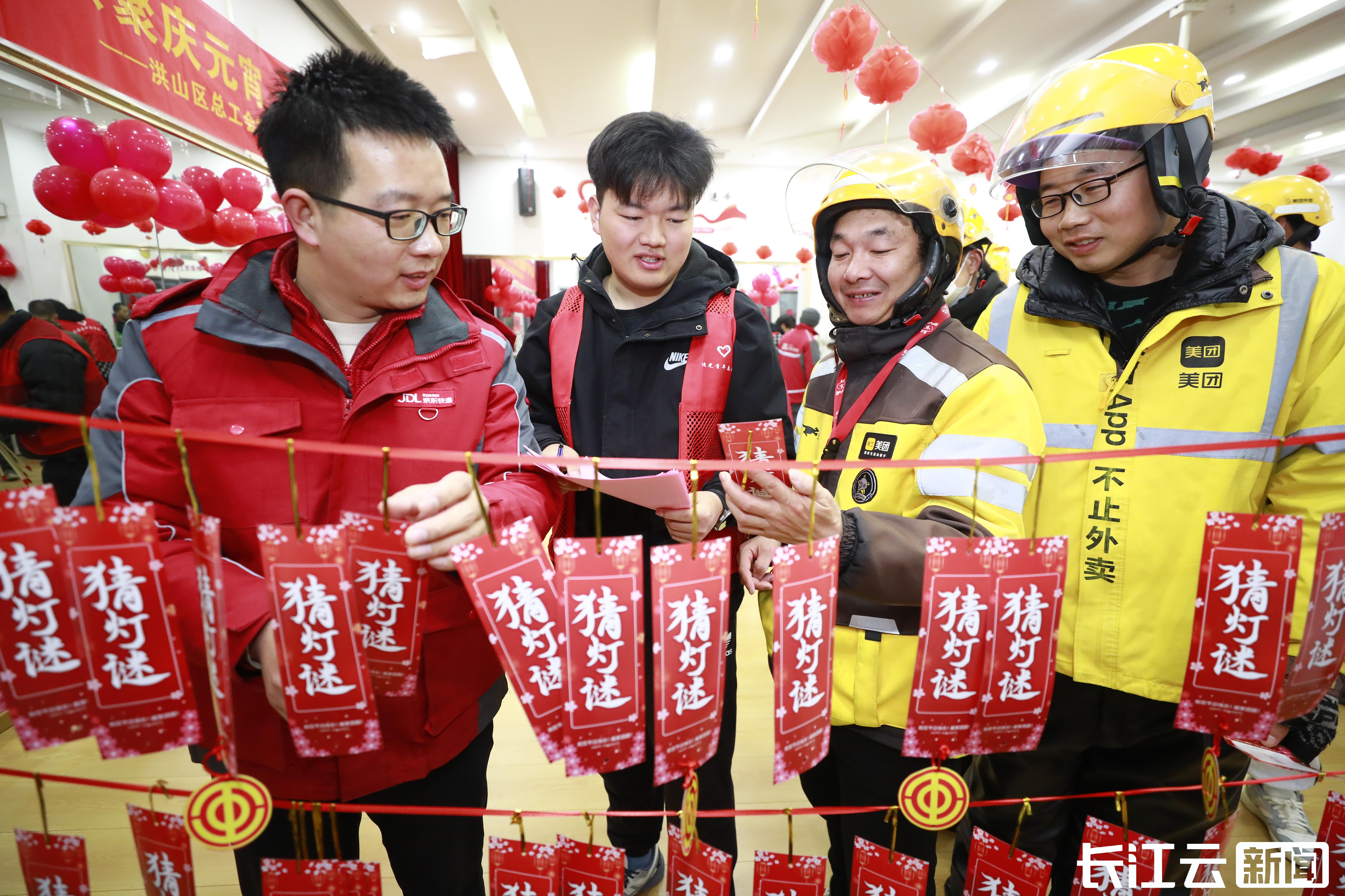 ▲武汉洪山区玫瑰湾社区工会驿站元宵节猜灯谜