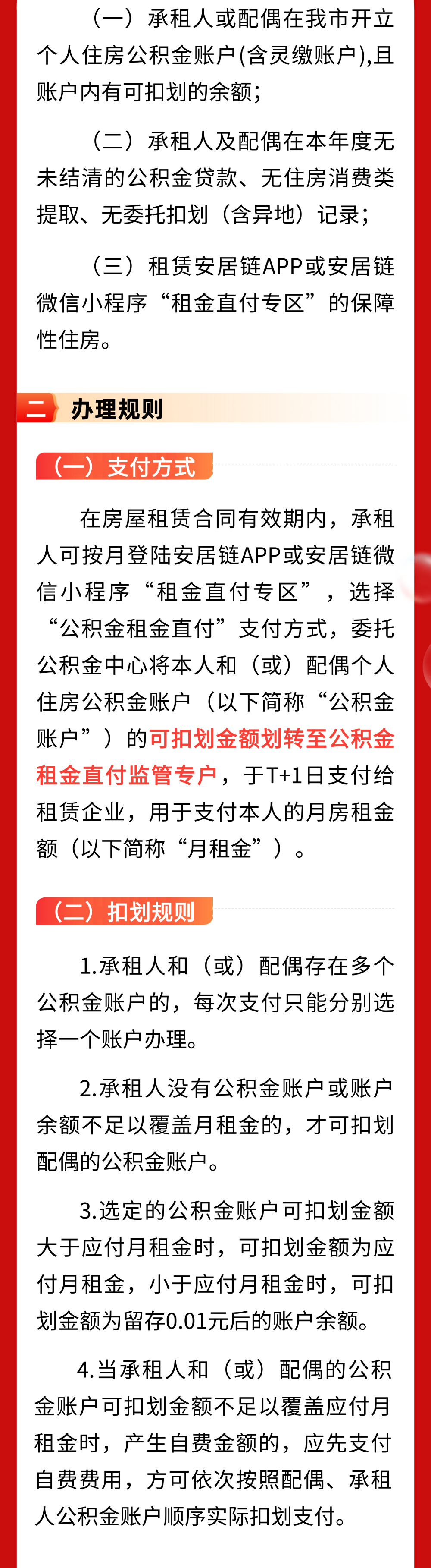 此外,使用租金直付方式,若职工公积金账户资金充足的情况下,可按每月实际房租支付,原年度上限将被突破。