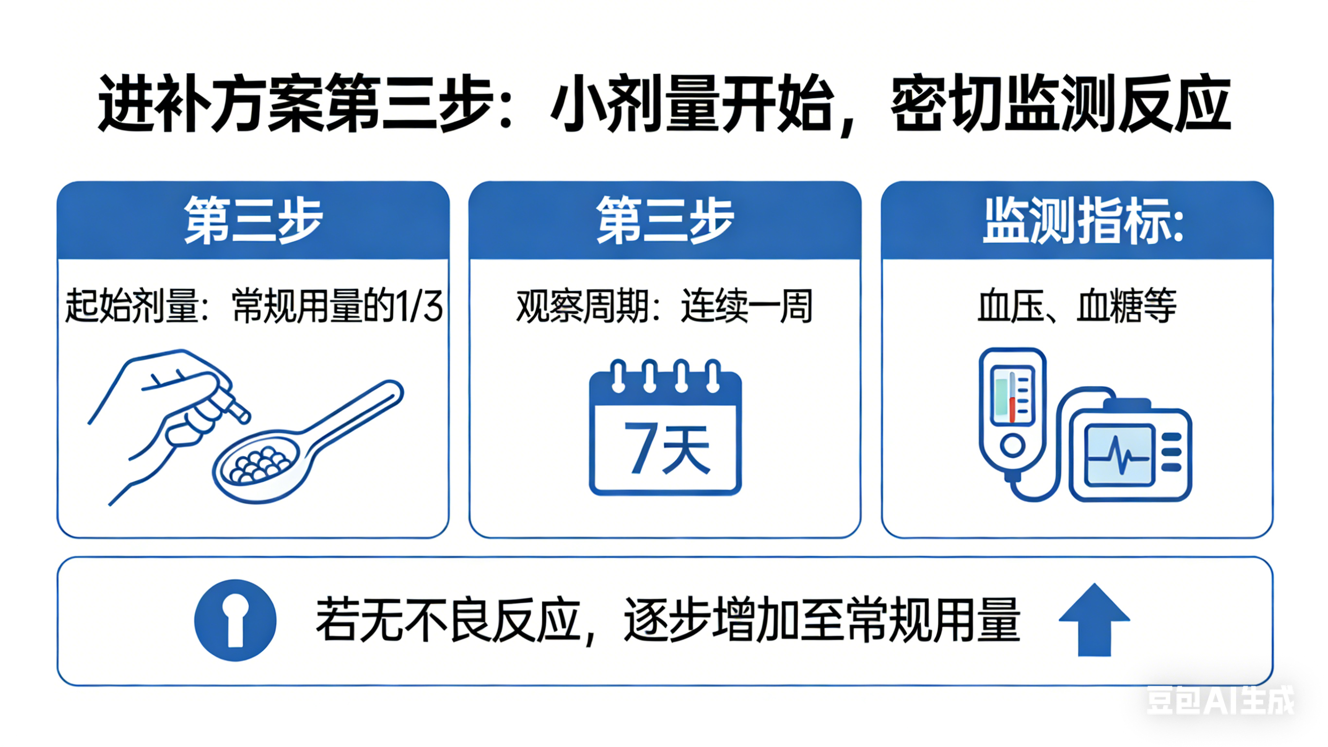 任何新的进补方案都应遵循“由少到多,循序渐进”的原则。
