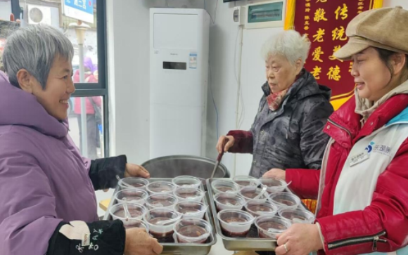 一大早,老年服务中心的工作人员和志愿者们便开始筹备起来。大家精心挑选了糯米、红豆、薏米、红枣、桂圆、莲子等多种优质食材,经过细致的淘洗、浸泡和精心熬煮,一锅锅软糯香甜的腊八粥香气四溢,弥漫在整个服务中心。考虑到老人们的健康需求,工作人员还贴心地准备了无糖版本,在细节中彰显了对老年群体无微不至的关怀。