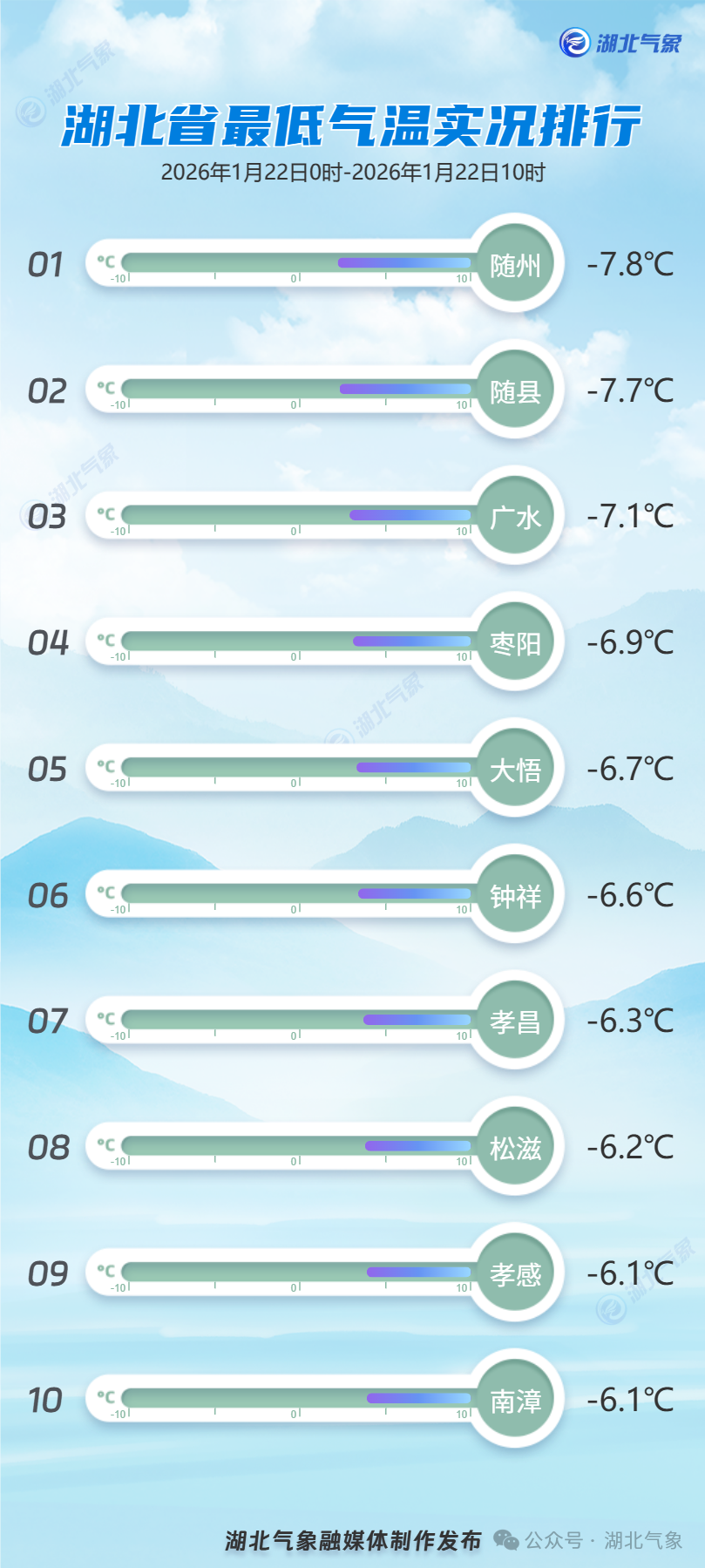 1月25日08时-26日08时,全省阴天转小雨,其中鄂西北山区有雨夹雪或小雪、局地有冻雨。最高气温中西部3~9℃、东部10~16℃,最低气温鄂西南5~8℃、其他地区-2~5℃,偏北风3到4级、阵风5到7级。