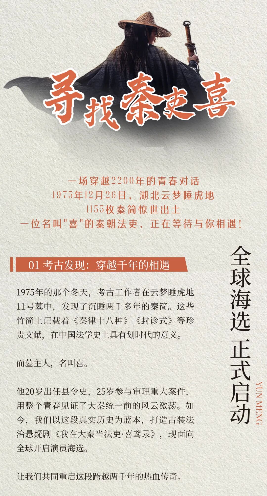 全球海选 | 秦吏“喜”和他的时代搭子,等你来演!