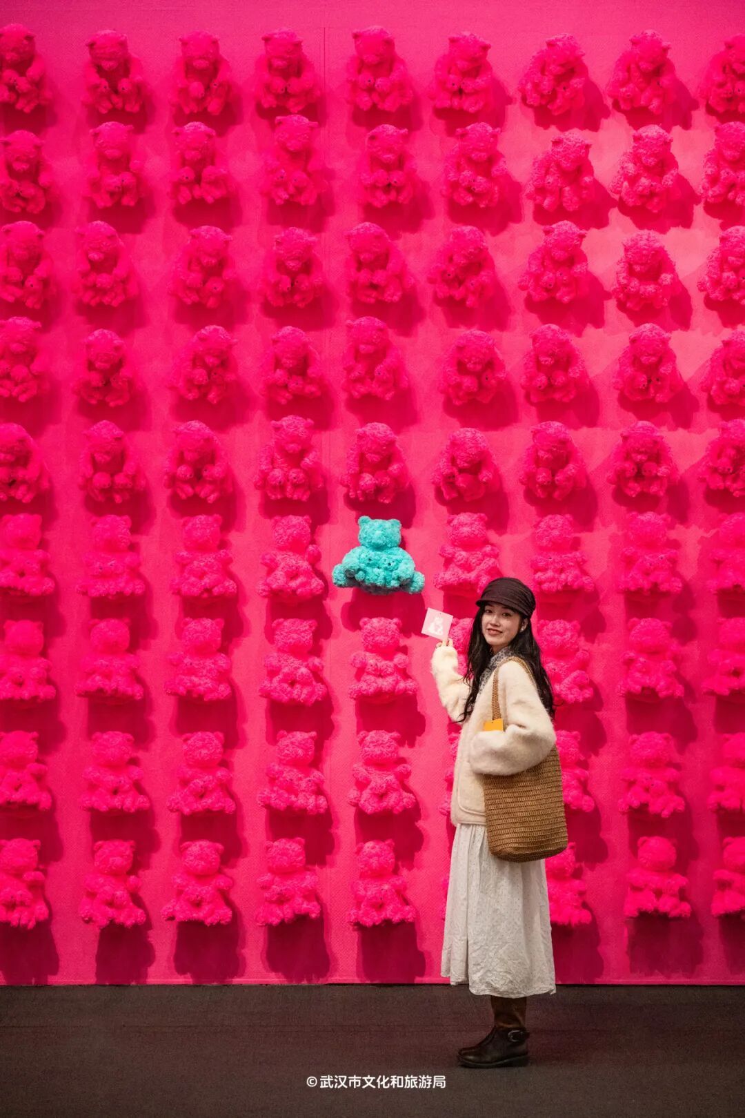 武汉美术馆(汉口馆)正在举办《艺术是温暖的——戴泽艺术精品展》,很多人打卡的粉色大熊就是艺术家戴泽的作品。