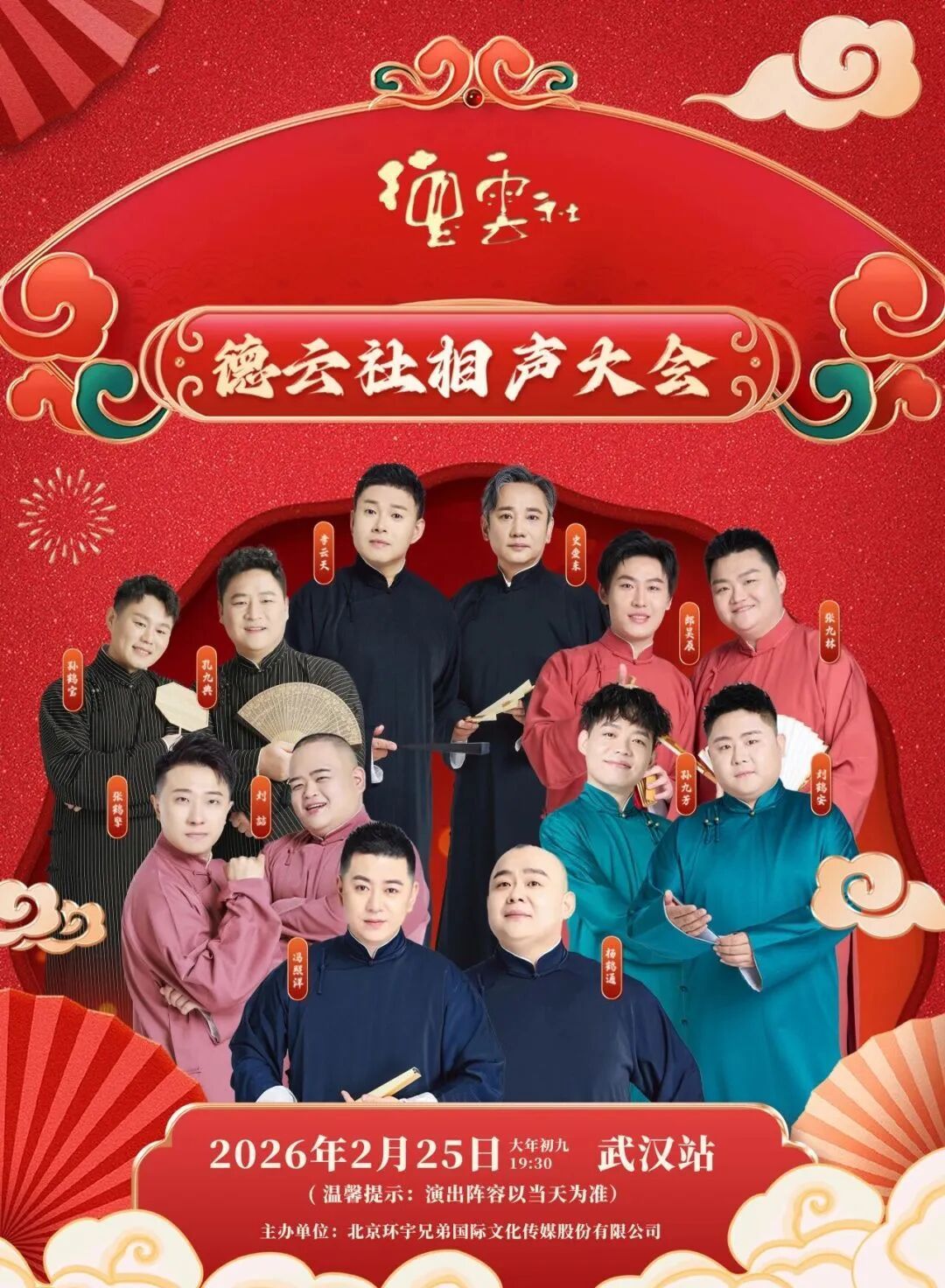 2月25日大年初九,德云社相声天团将亮相琴台大剧院,12位实力派演员,在两小时内说学逗唱,使尽浑身解数逗你开心。