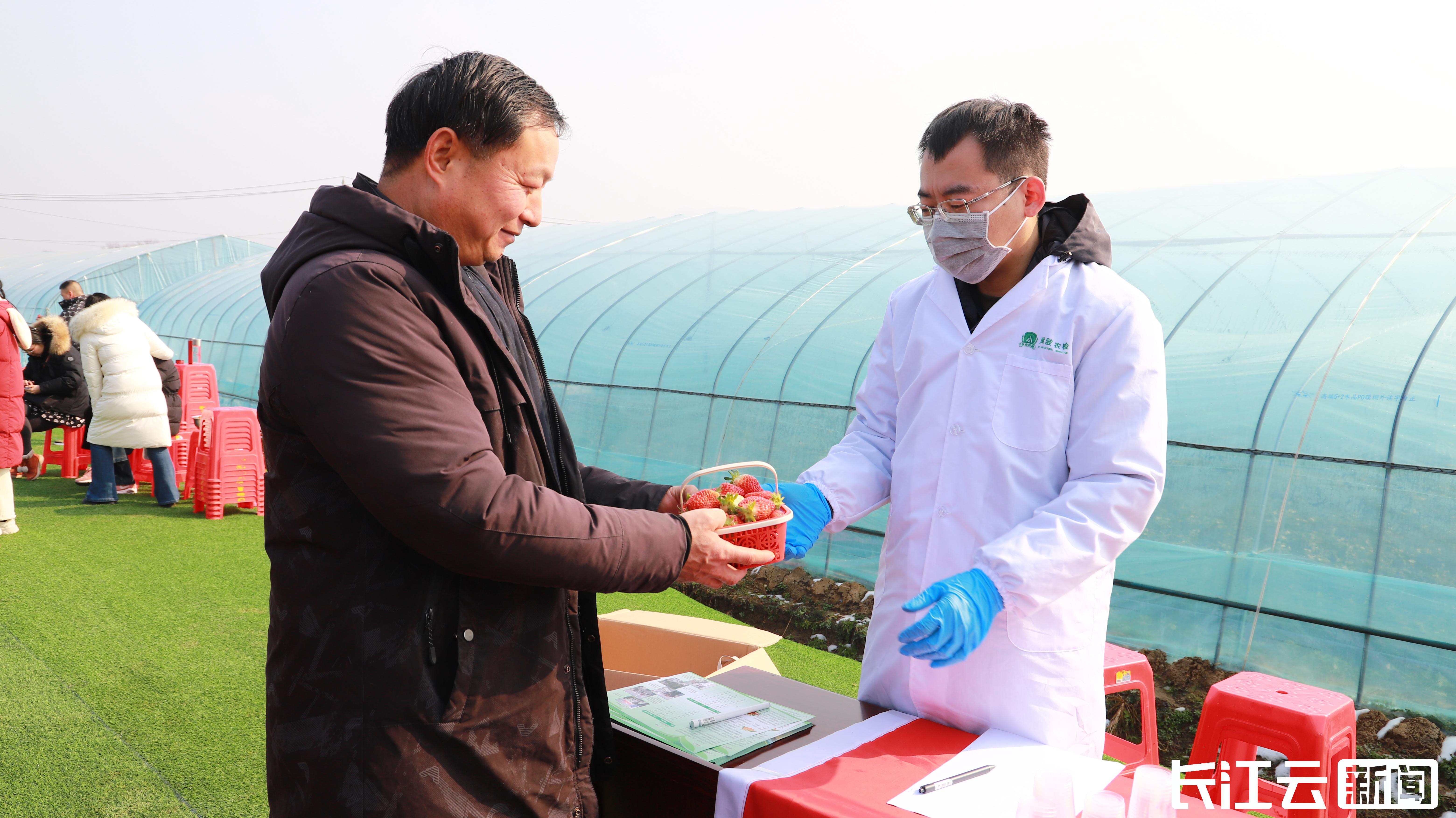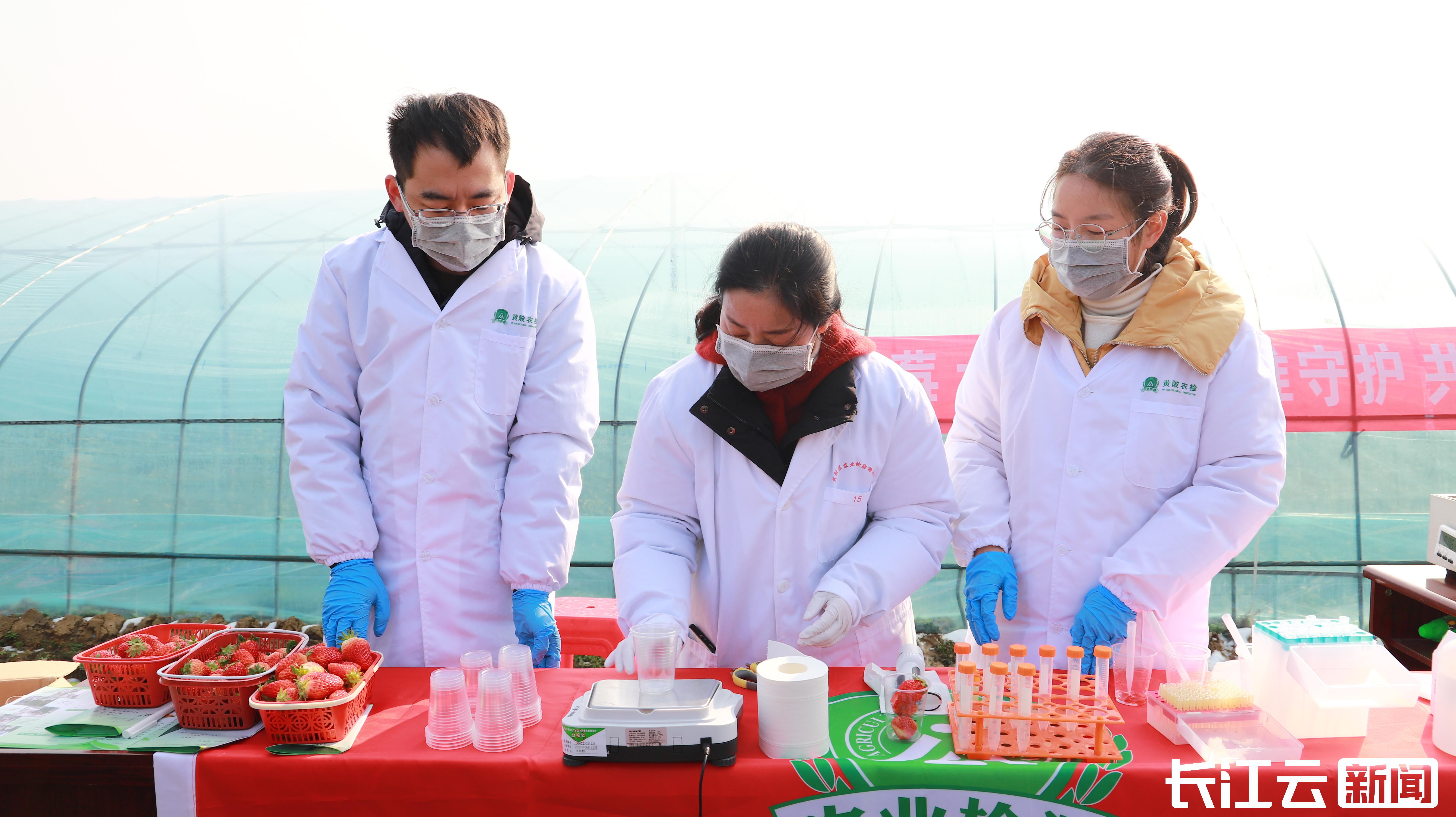 1月23日上午,长江云新闻记者跟随武汉市农业农村局和武汉农业检测中心赴黄陂区王家河街木兰红草莓小镇开展草莓上市前的质量安全抽检。工作人员现场随机抽取草莓样品10个,快速检测有机磷类和氨基甲酸酯类农药,显示全部合格。武汉农业检测中心还现场抽取定量检测样品5个,带回武汉农业检测中心实验室开展有机磷类、氨基甲酸酯类、菊酯类、有机氯类等75项次农药残留的定量检测,检测结果将上报主管部门。