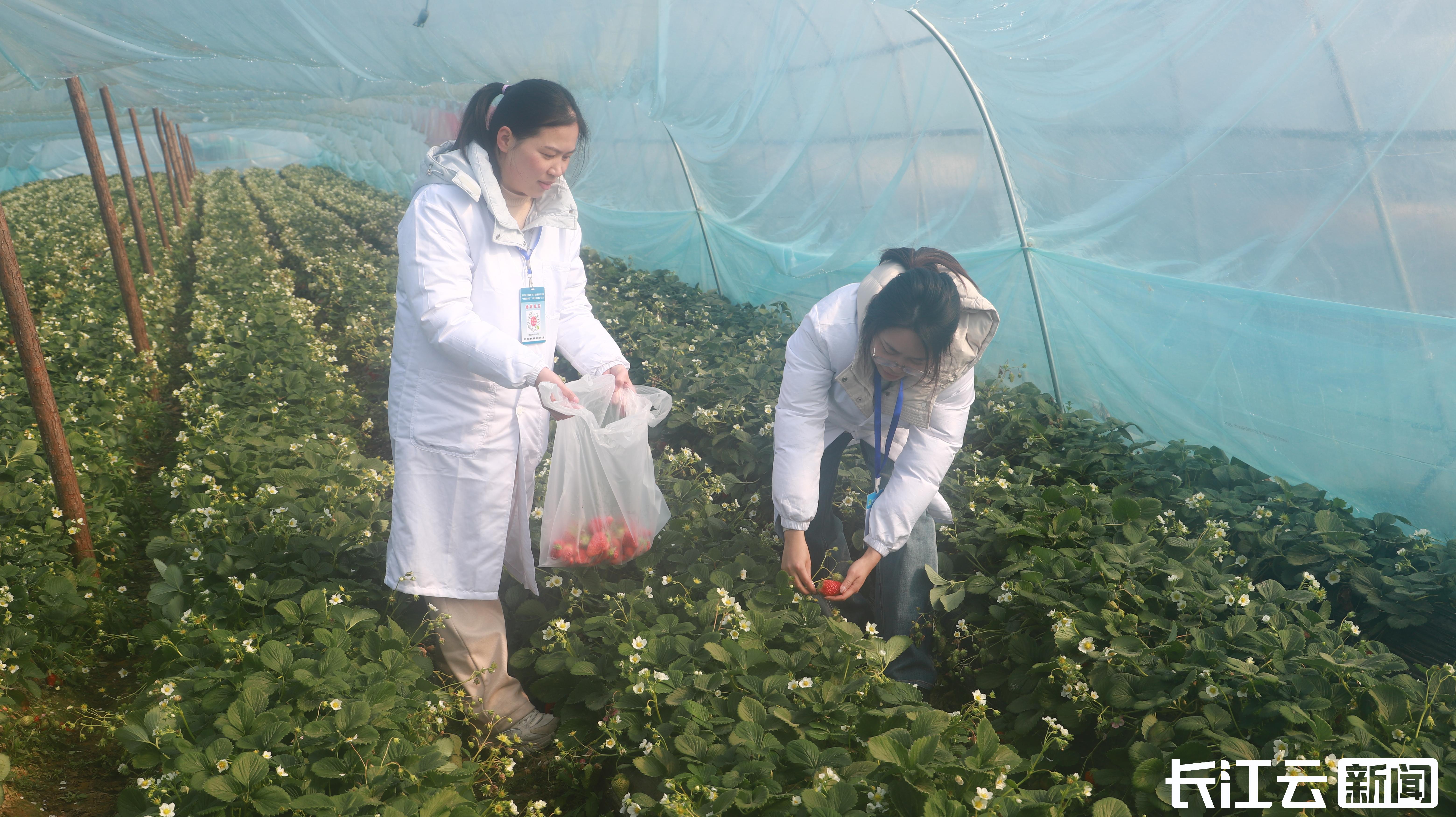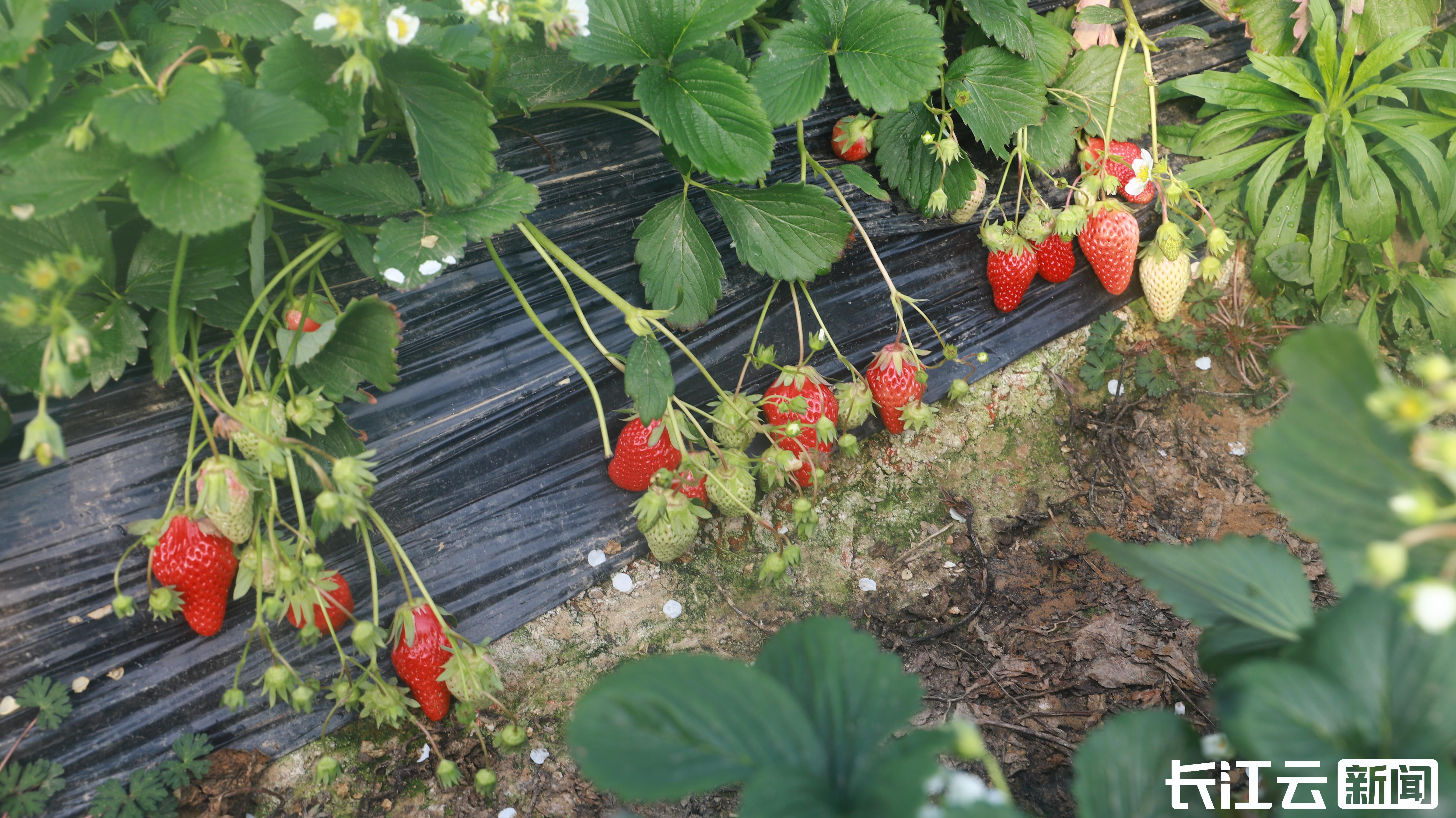 春节将至,武汉黄陂区的草莓园里硕果累累,一颗颗色泽红艳、果肉饱满的草莓从簇生的叶丛中探出头来,成为市民年货清单上的“心头好”。