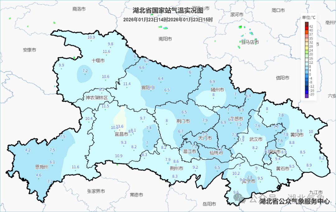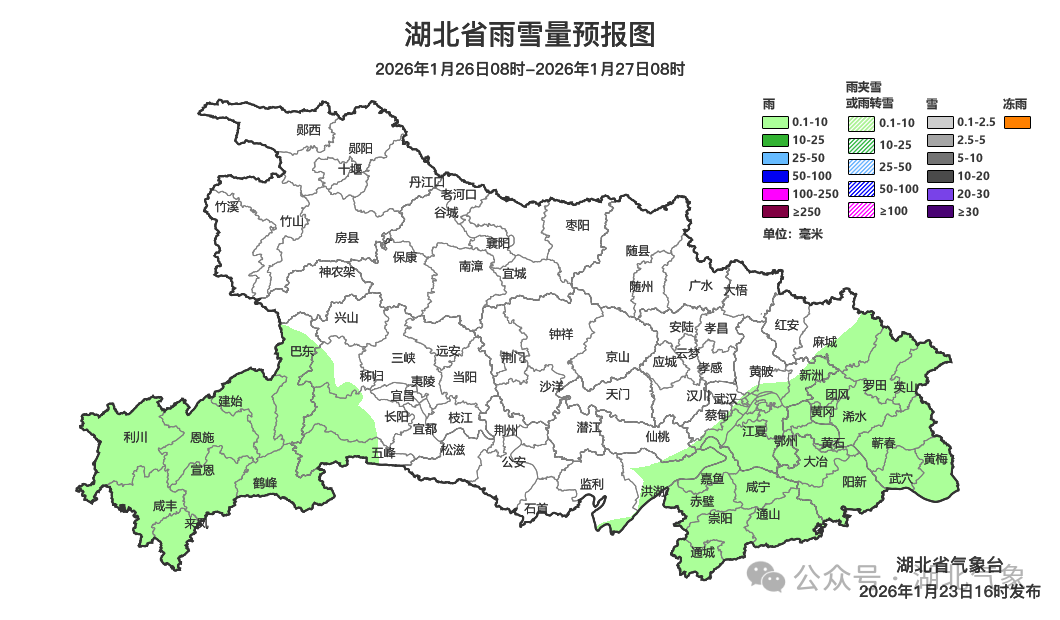 预报来源:湖北省气象台2026年1月23日16时预报