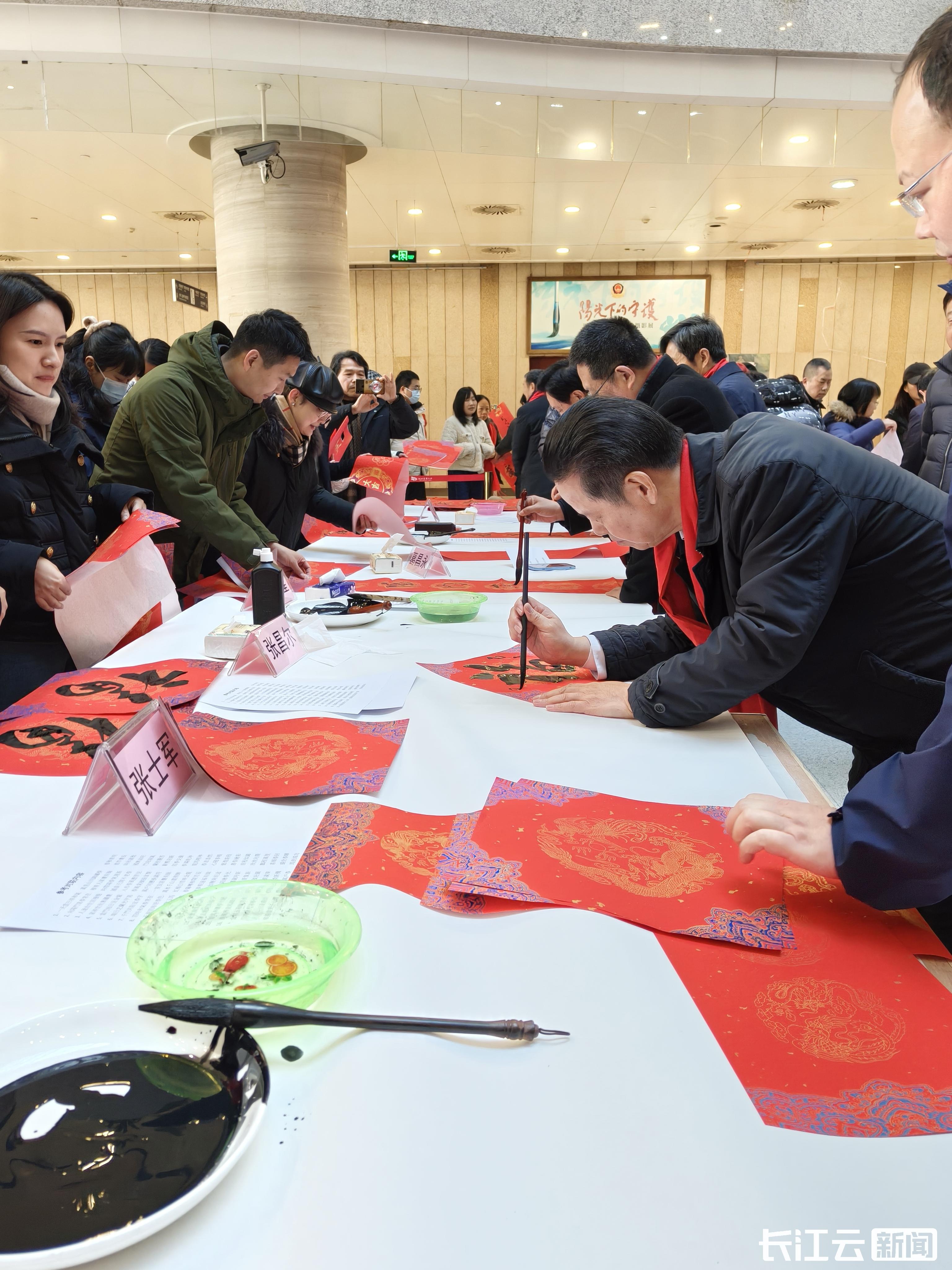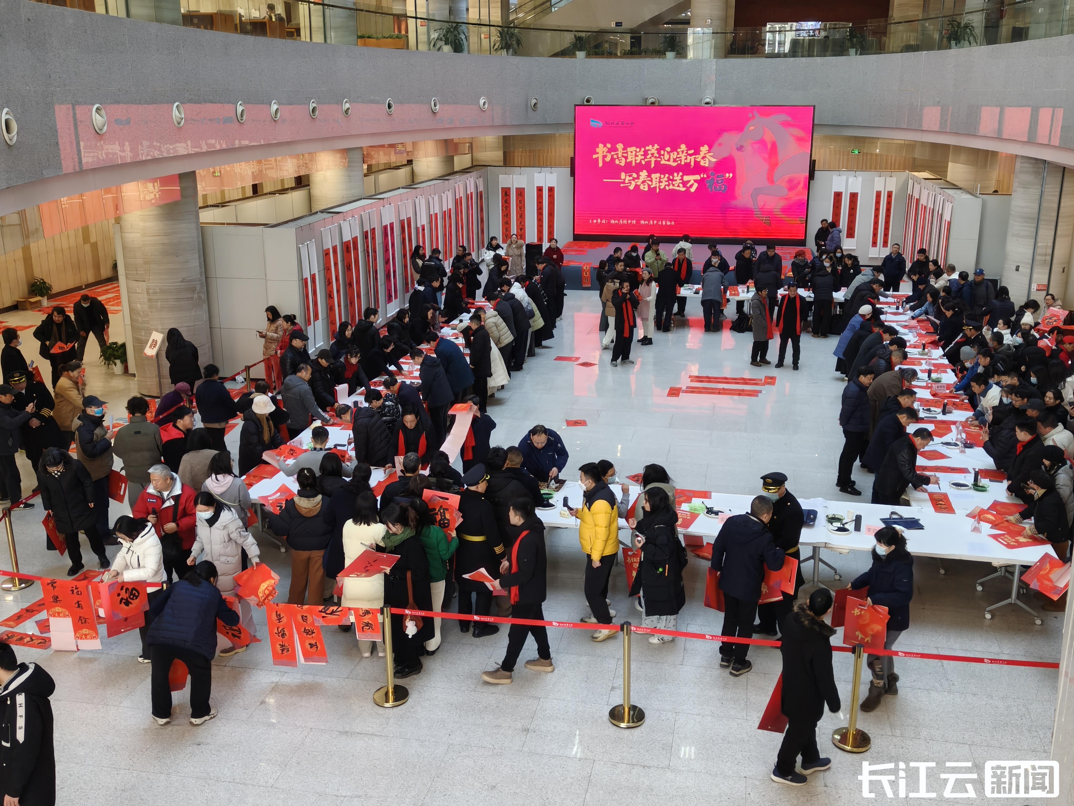 1月23日上午,湖北省图书馆东庭内暖意融融、墨香四溢,第八届书香联萃迎新春——书法名家写春联送万“福”惠民活动在此举办。