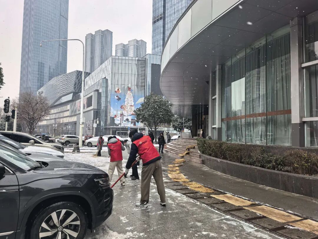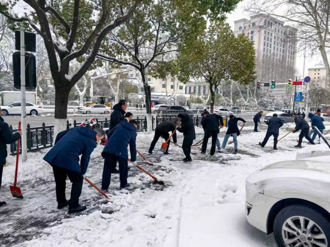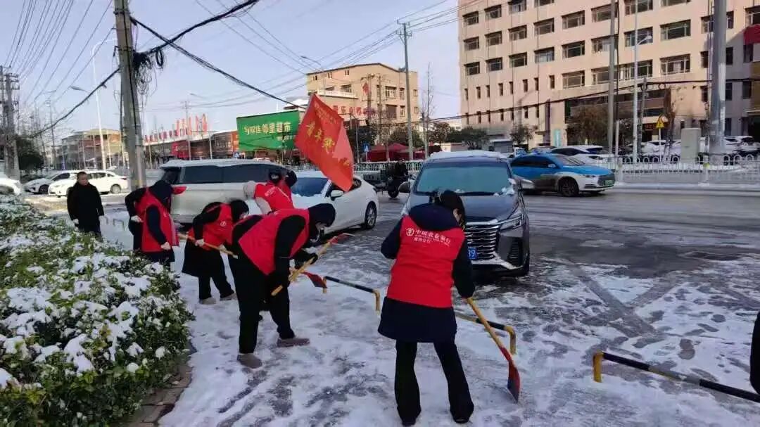 ▲随州分行青年志愿服务队清晨集结,清扫社区街道积雪