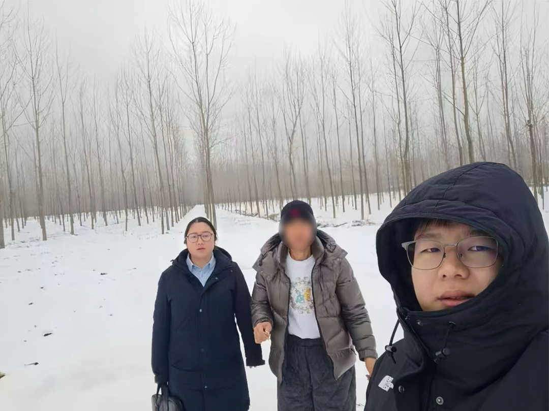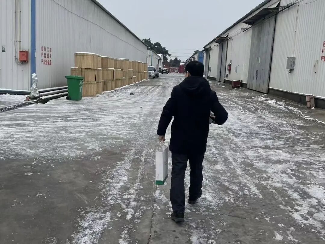 ▲潜江分行青年员工心系当地木材砍伐与加工农户,顶风冒雪送贷上门