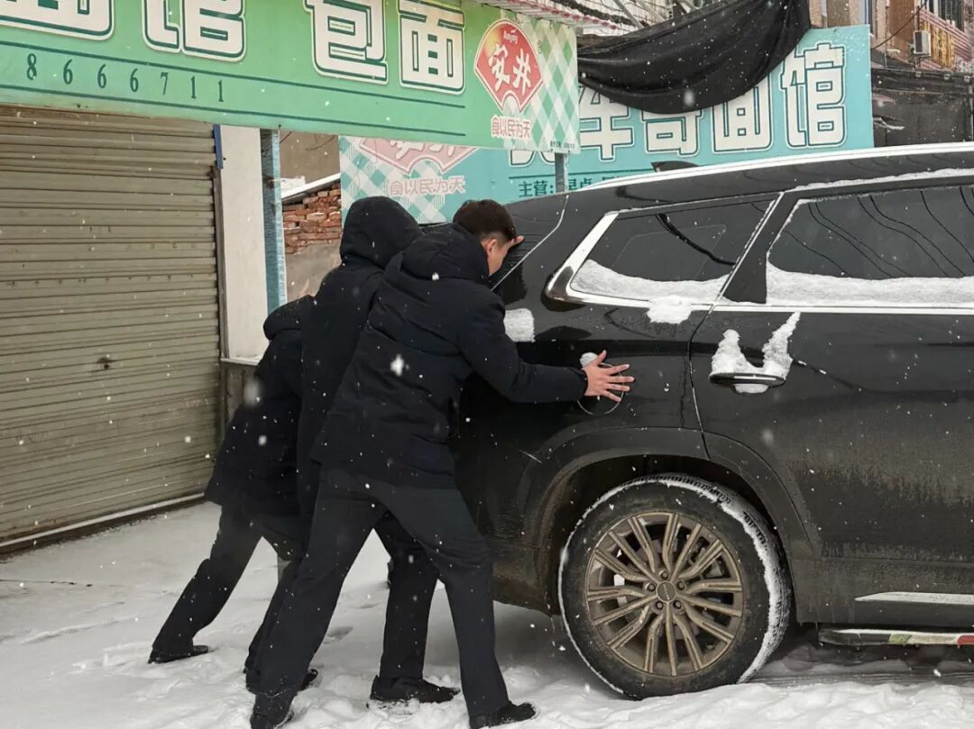 在省分行团委的号召下,青年志愿服务队提前到岗集结,手持铁锹、扫帚等工具,对营业网点门前、社区出入口及主干道等区域实施网格化清雪作业,同步铺设防滑垫、设置警示标识,细心搀扶老人、引导客户安全进出营业网点,全力消除安全隐患。同时,青年志愿者们主动延伸服务触角,为受困车辆提供牵引协助,在周边路口参与交通疏导,为往来群众出行保驾护航。