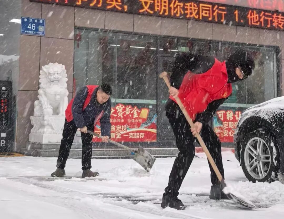 ▲黄冈分行青年志愿服务队清理网点周边积雪